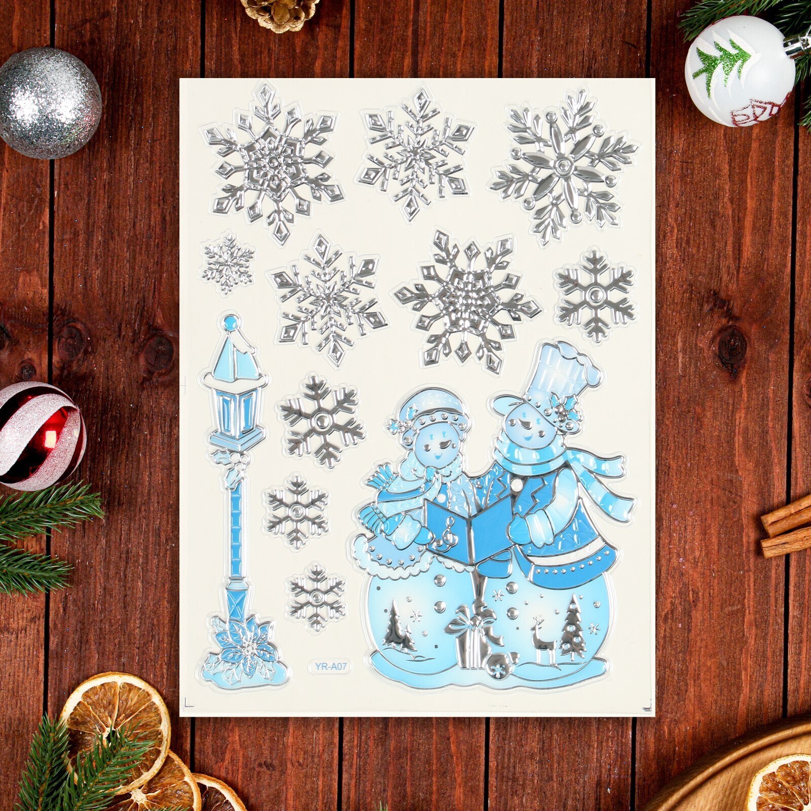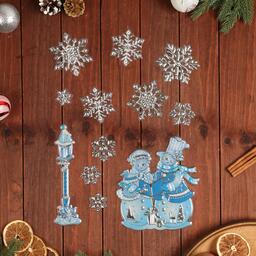 Наклейки на окна "Новогодние" снеговики, снежинки, 43 х 28 см