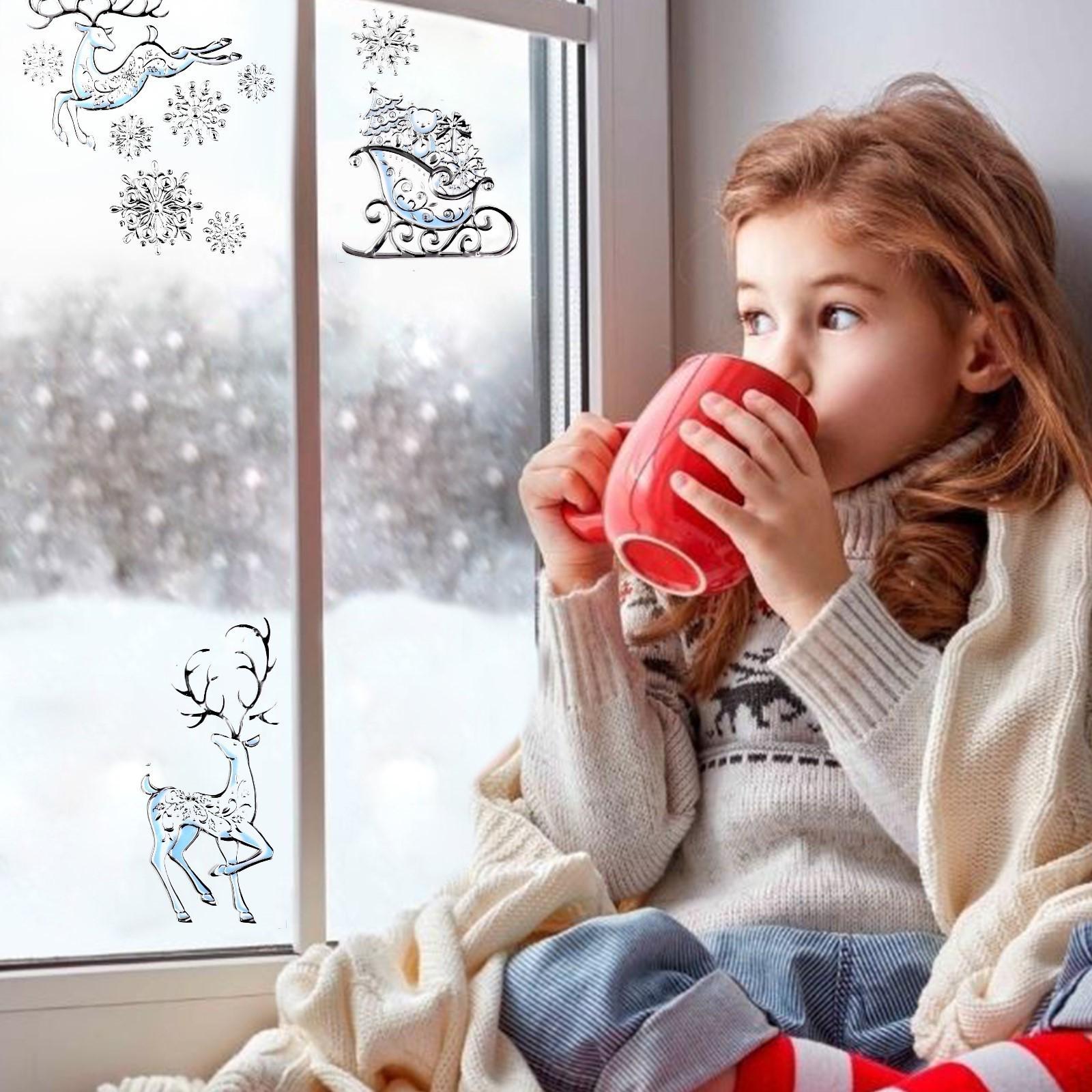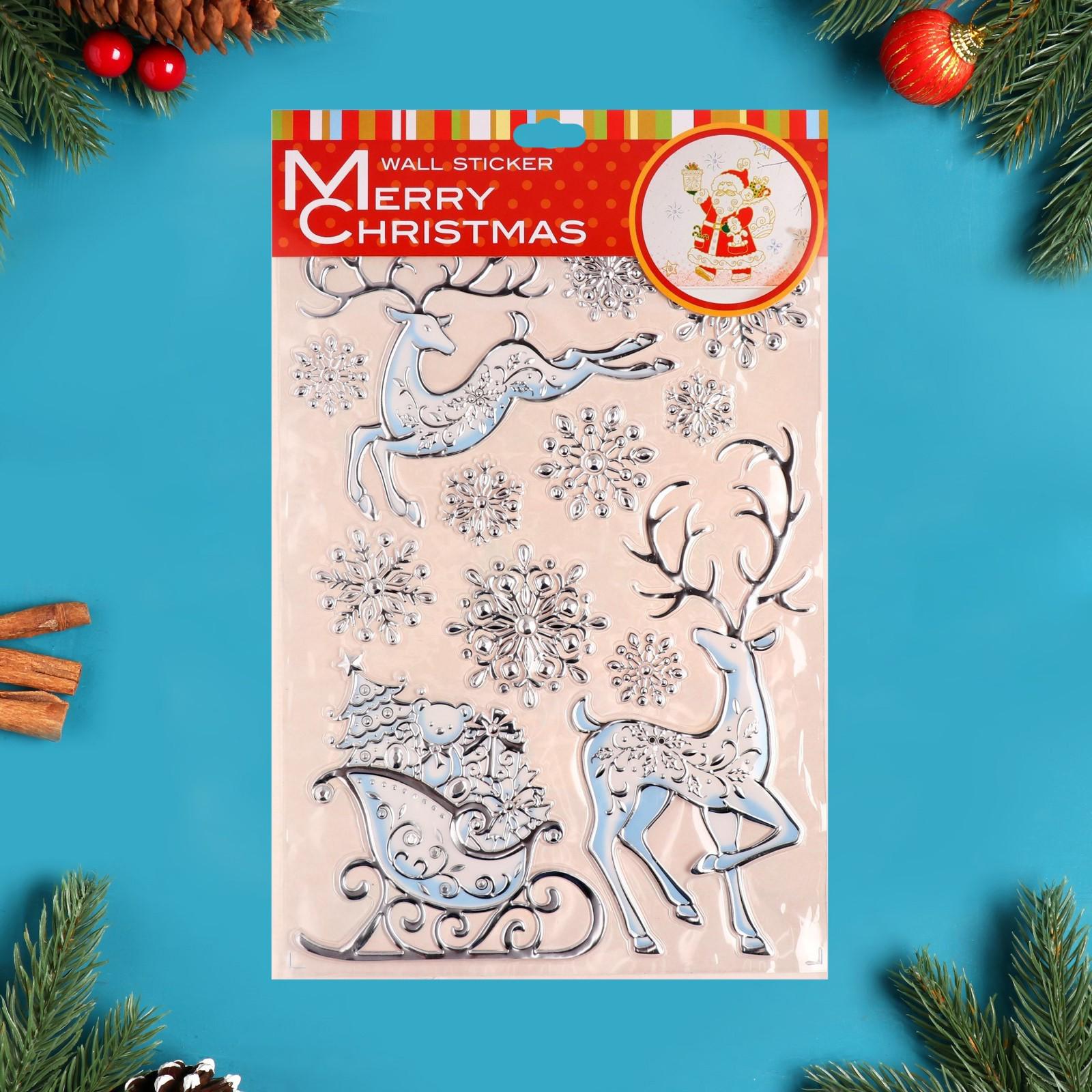 Наклейки на окна "Новогодние" олени, снежинки, 50 х 30 см