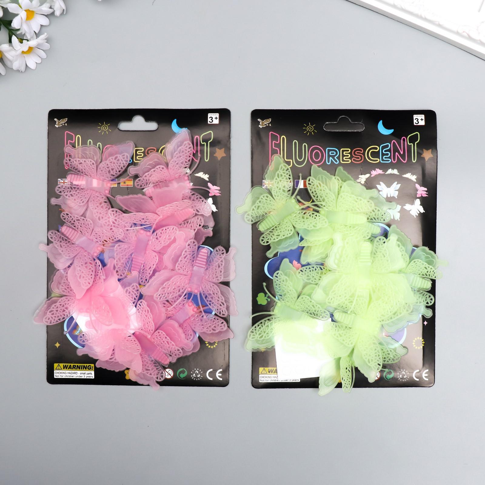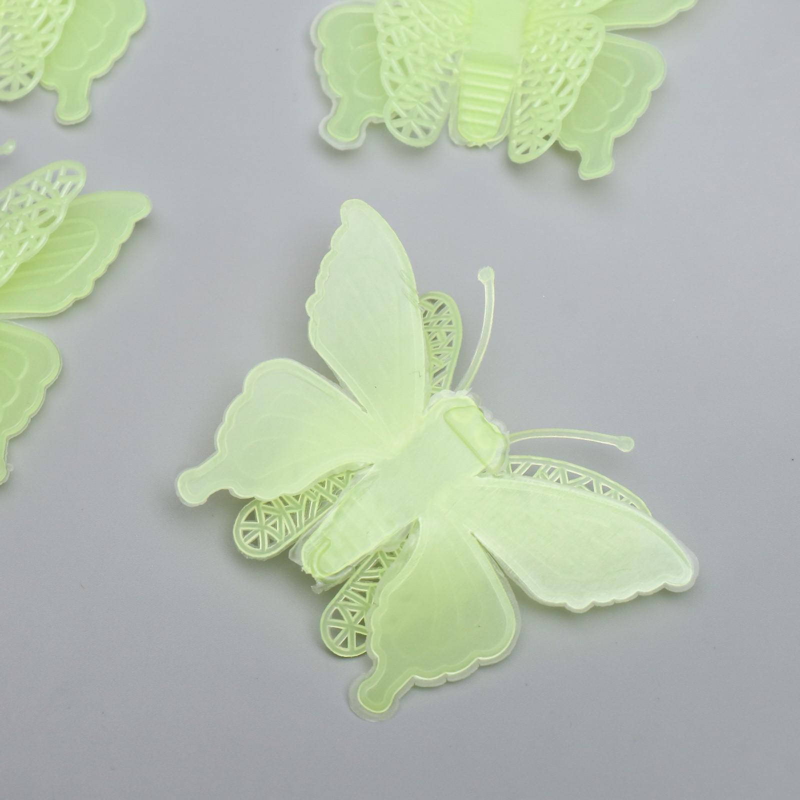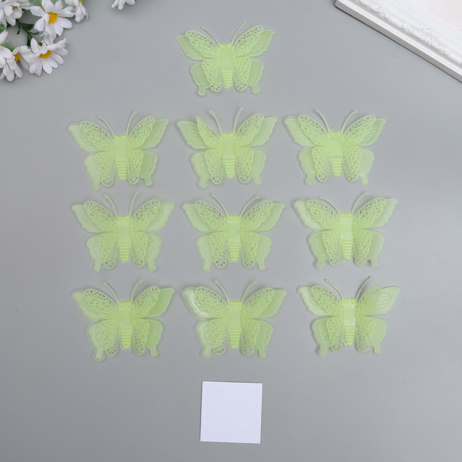 Наклейка пластик фосфорная "Бабочки" набор 10 шт 5,2х7,5 см МИКС
