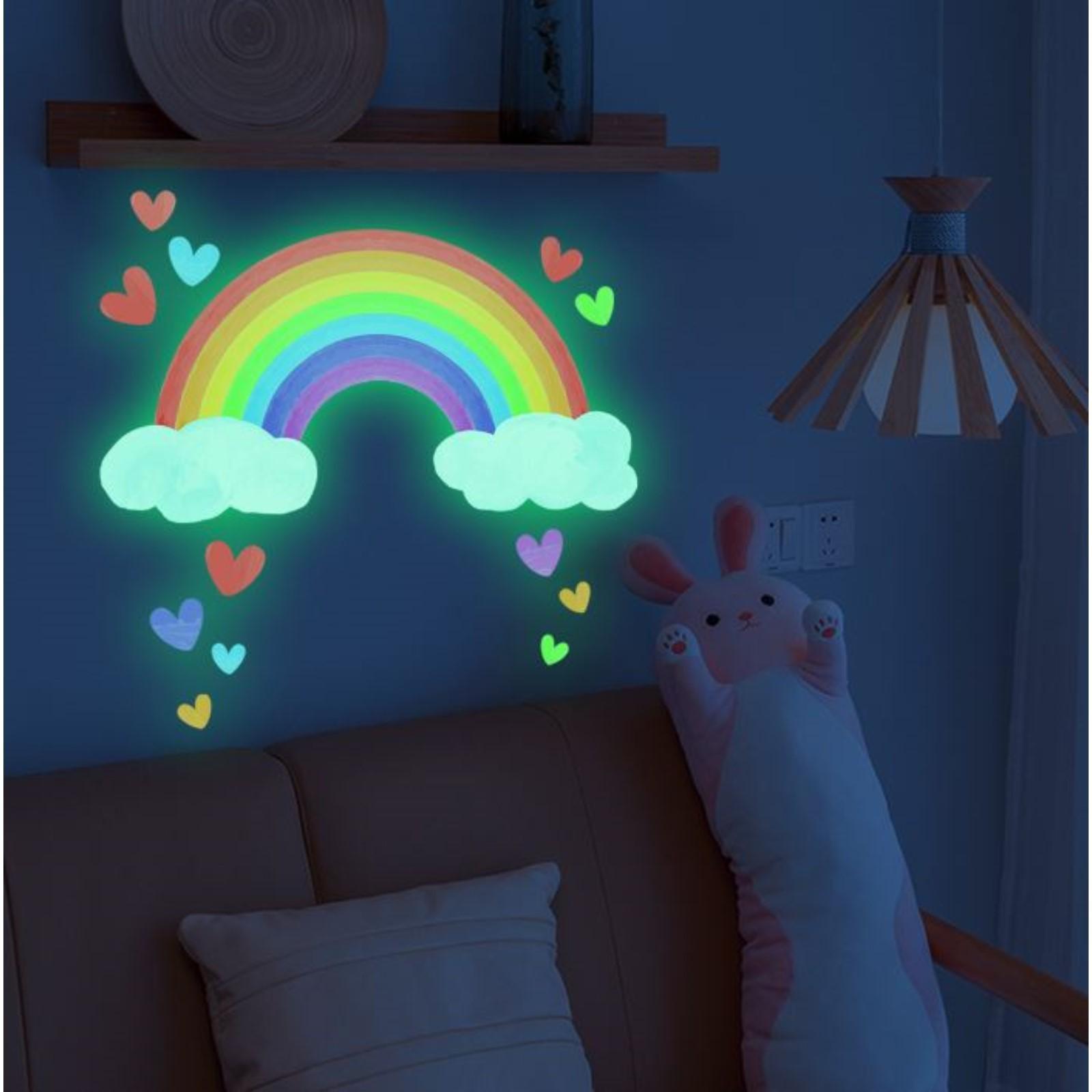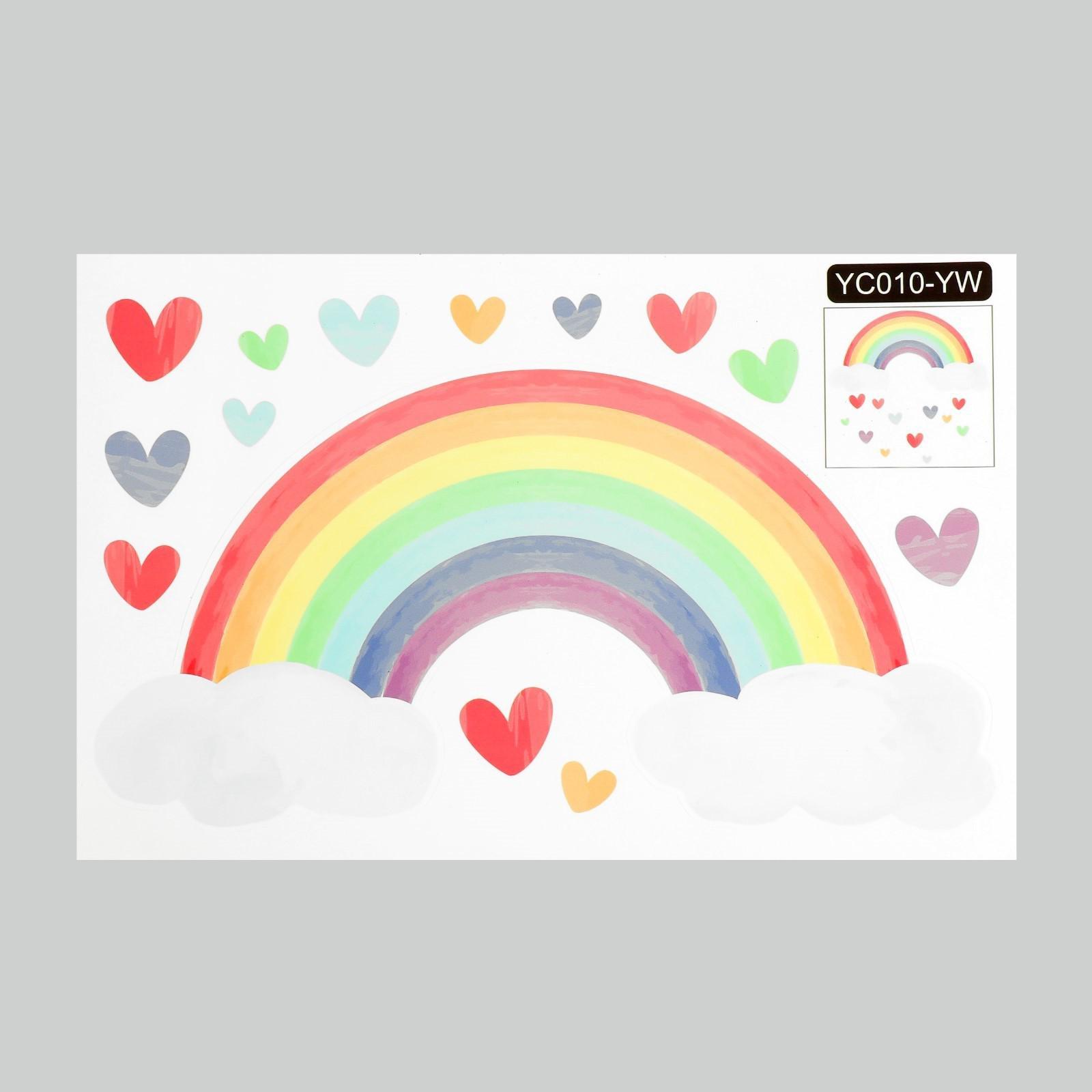 Наклейка пластик интерьерная фосфорная "Радуга с сердечками" 29х19 см