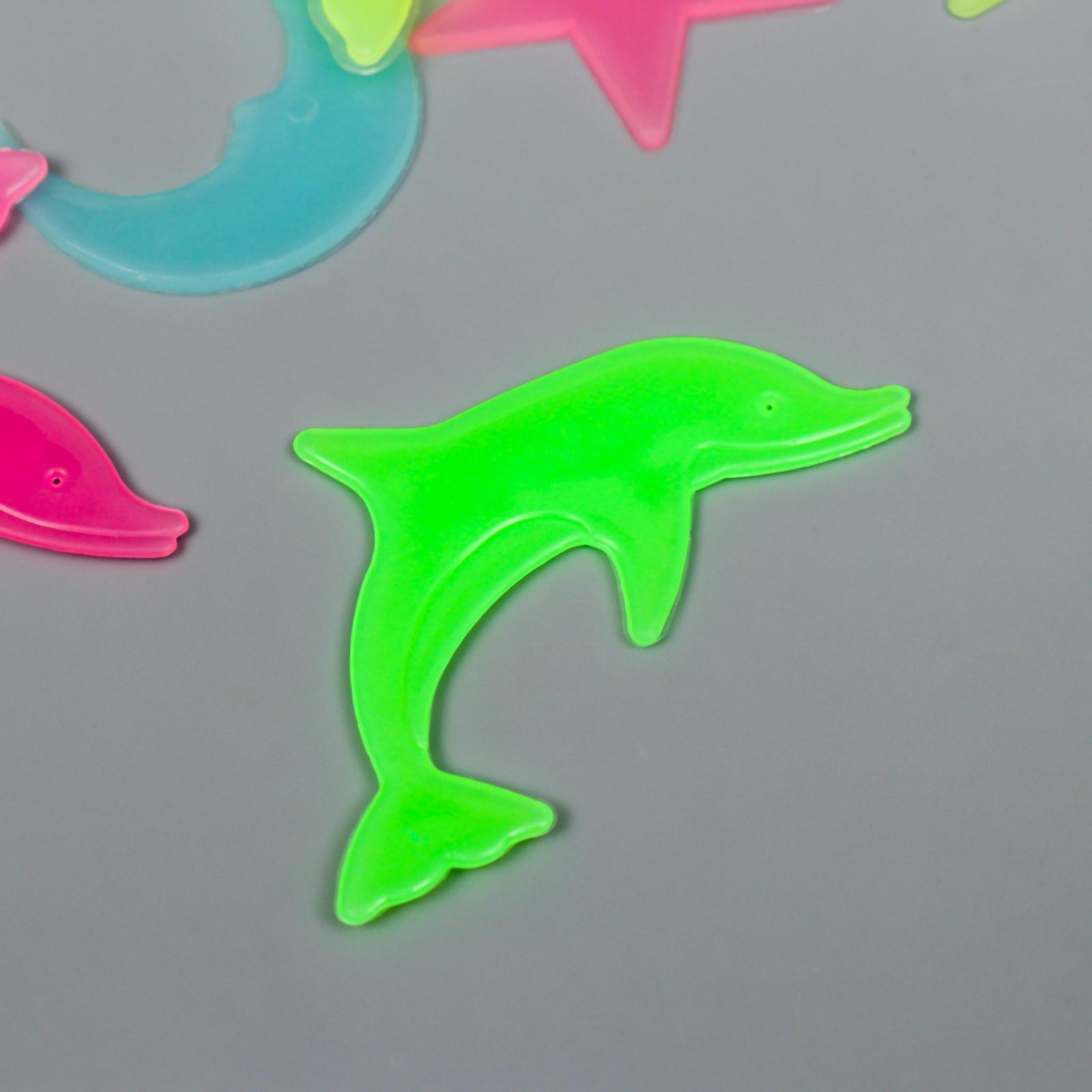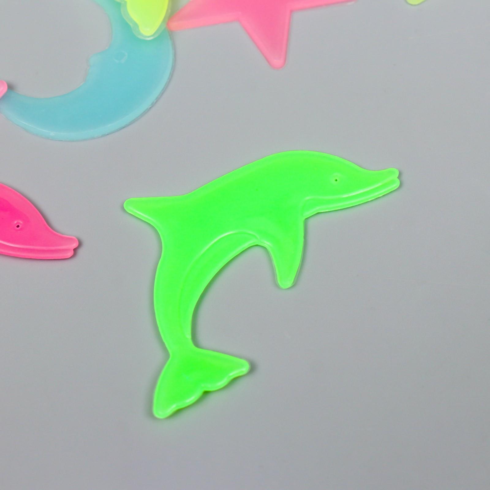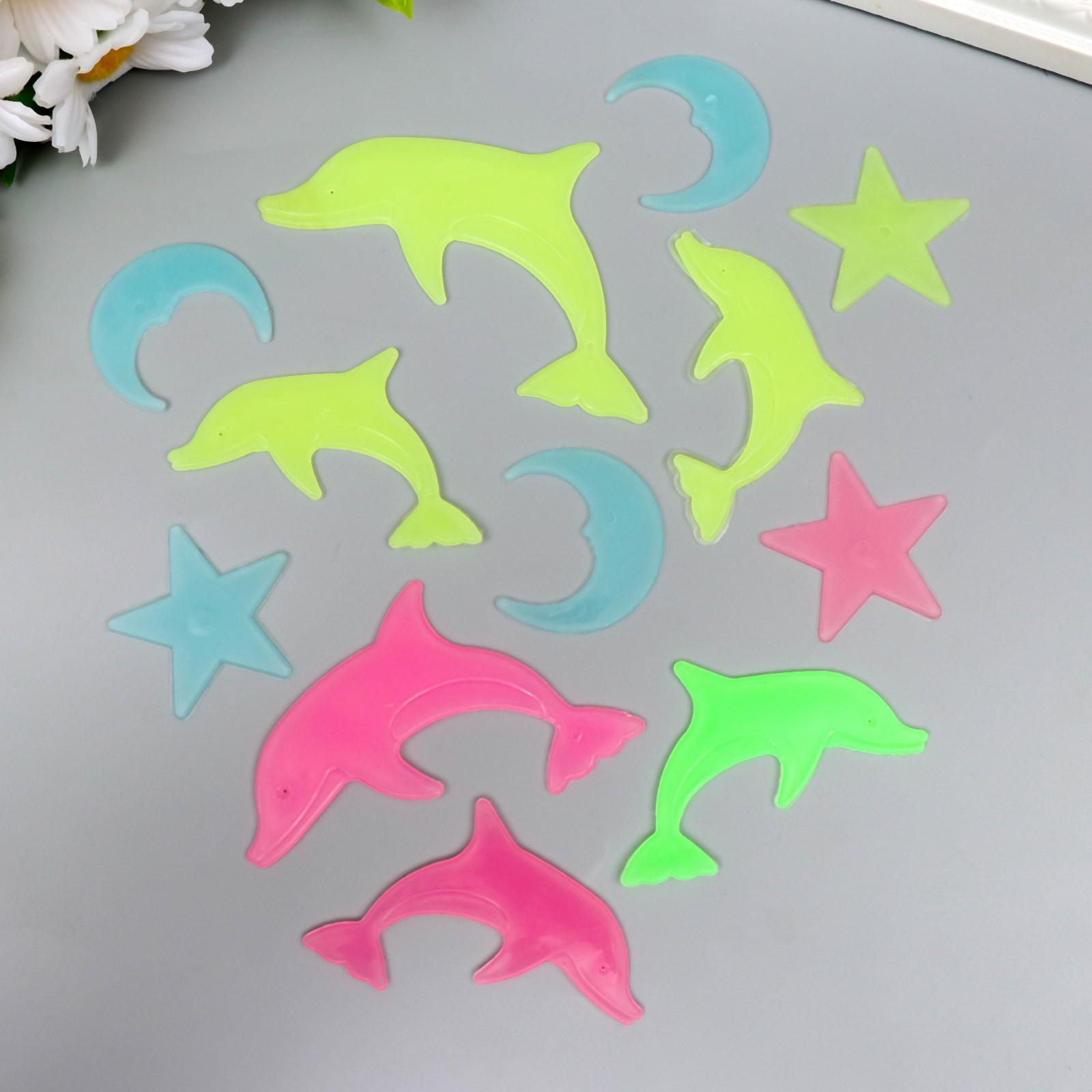 Наклейка фосфорная пластик "Дельфины, месяц и звёзды" набор 12 шт 17х12 см