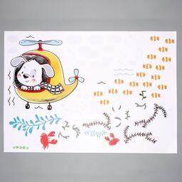 Наклейка пластик интерьерная цветная "Пёсик в вертолёте" 50х70 см
