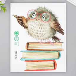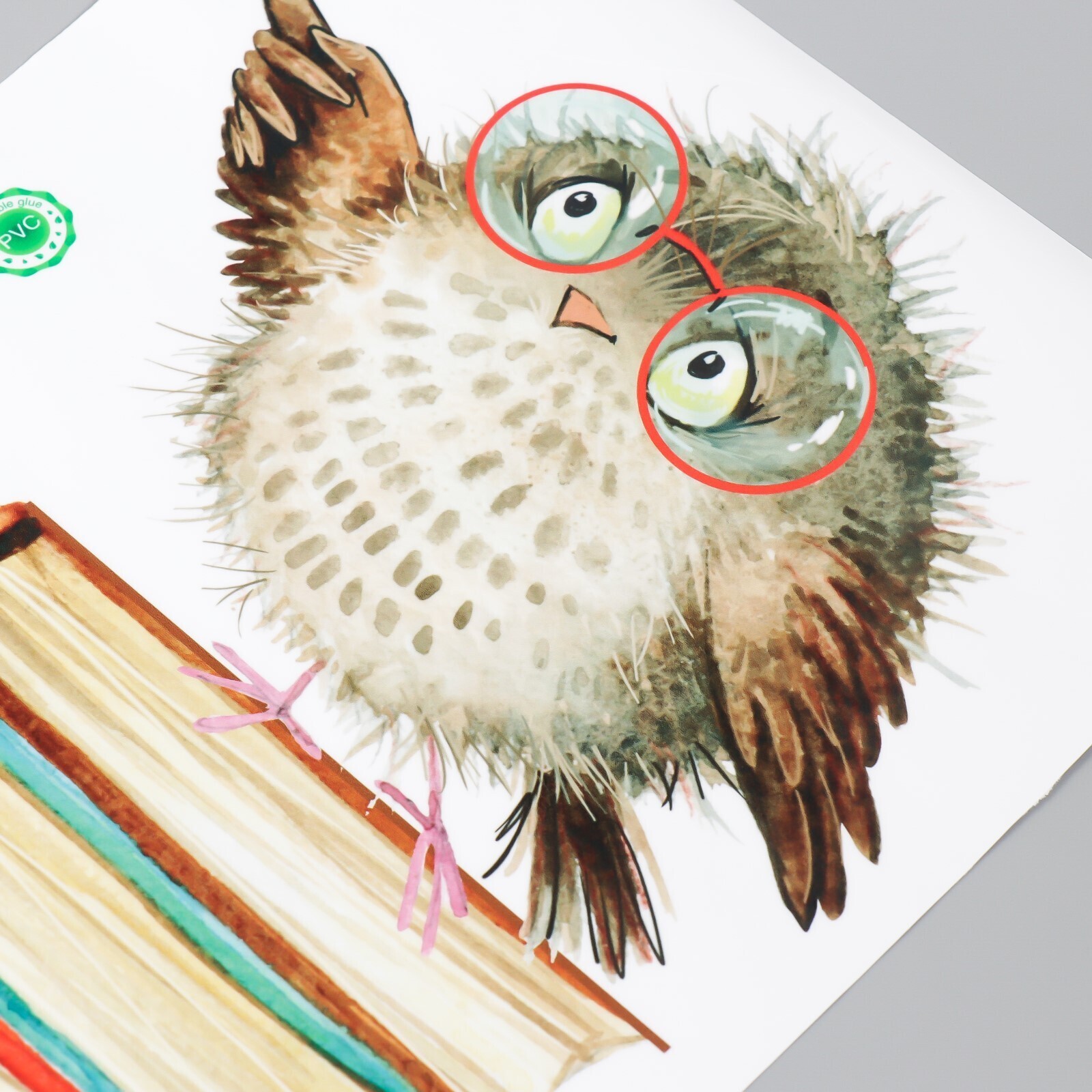 Наклейка пластик интерьерная цветная "Малыш филин на книгах" 23х29 см