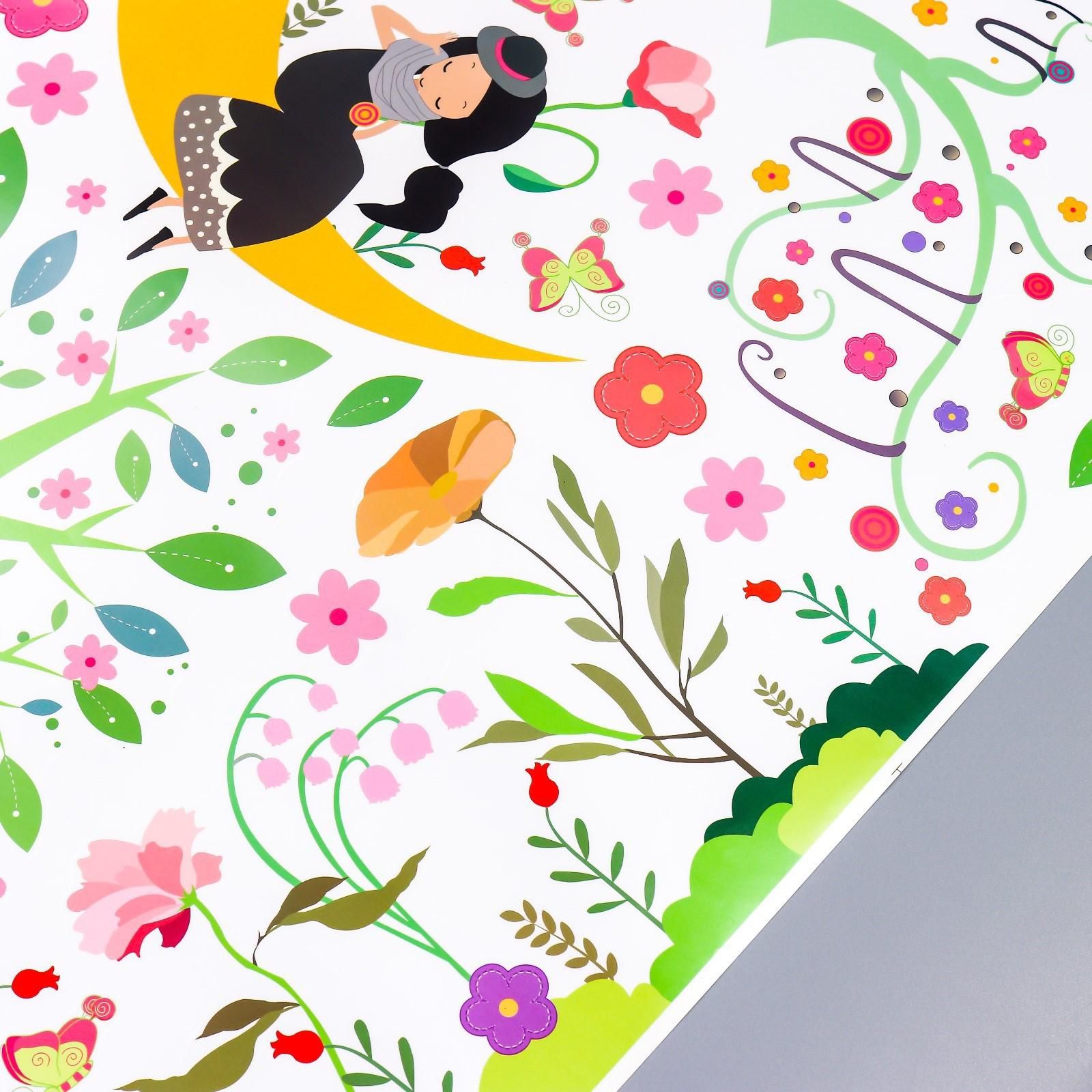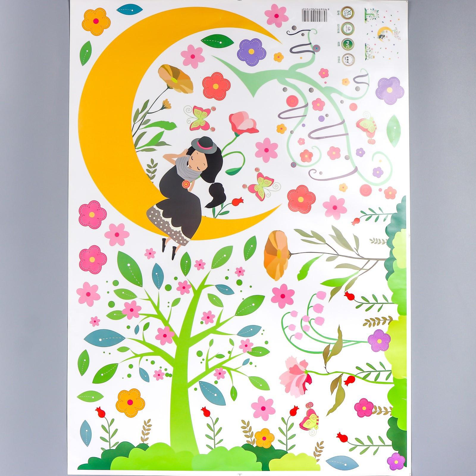 Наклейка пластик интерьерная цветная "Девочка на месяце и цветы" 50х70 см