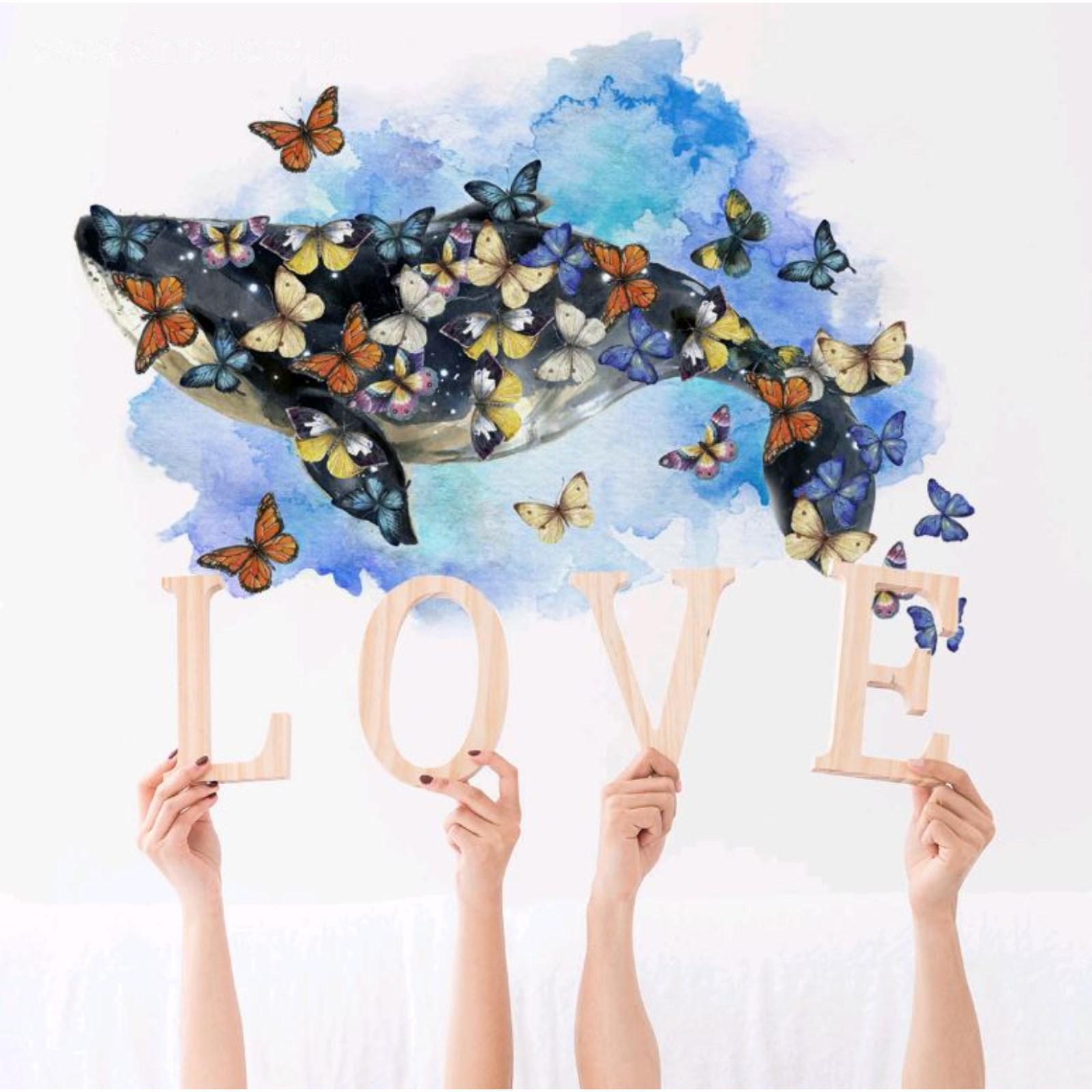 Наклейка пластик интерьерная "Кит с бабочками" 50х70 см