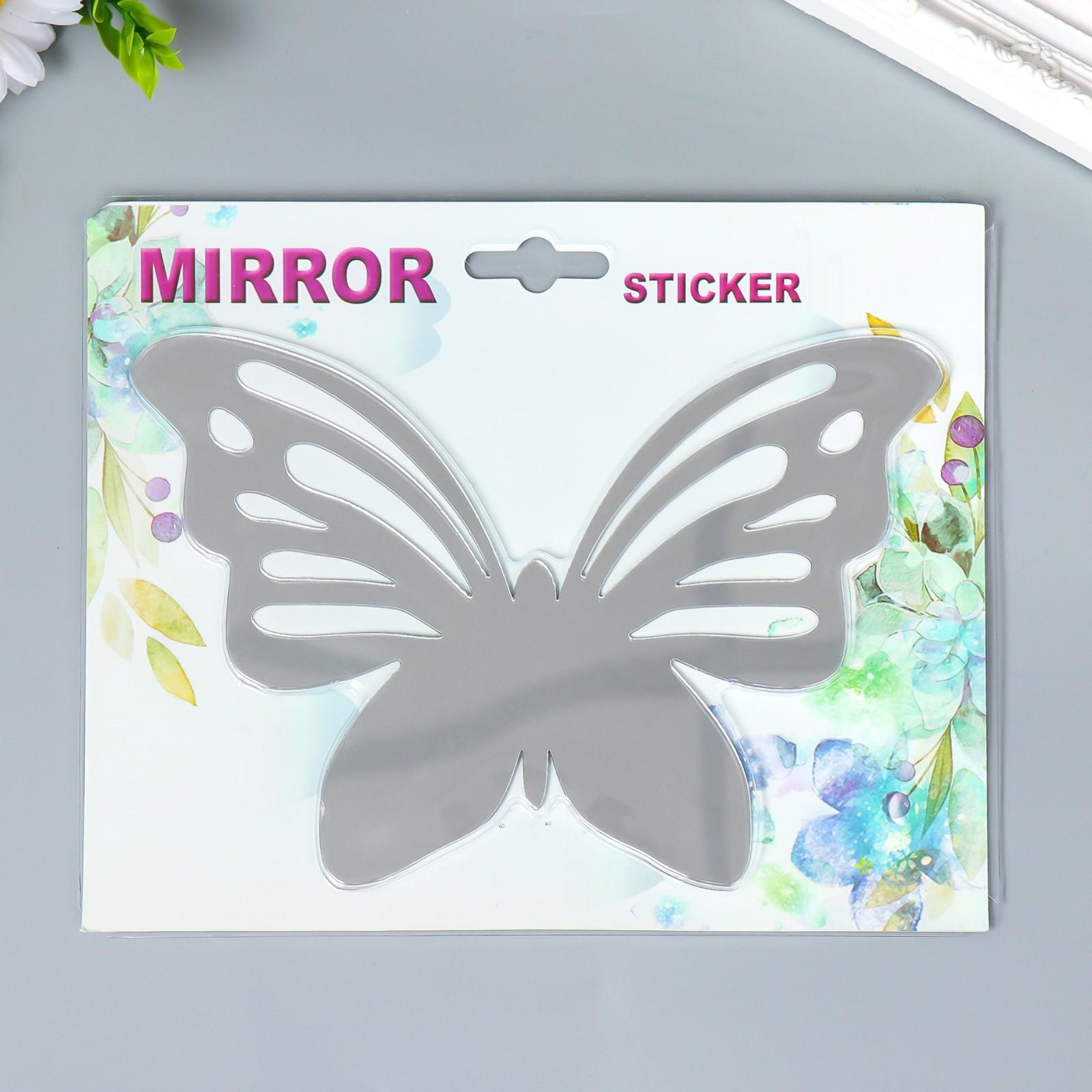Наклейка интерьерная зеркальная "Бабочка ажурная" серебро 21х15 см