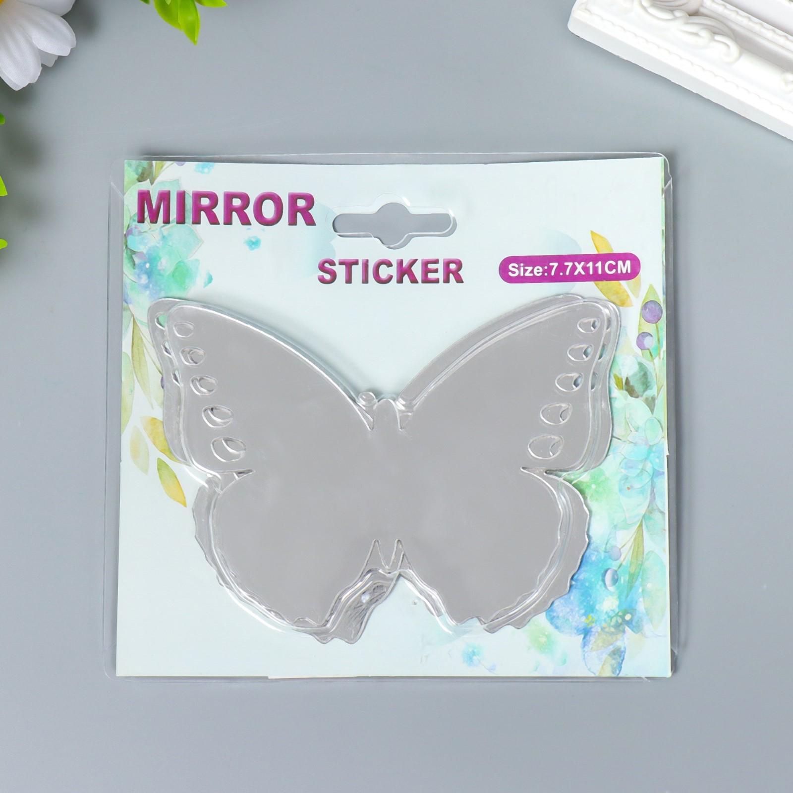 Наклейка интерьерная зеркальная "Бабочка ажурная" набор 3 шт серебро 11х7,5 см