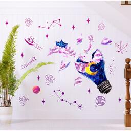 Наклейка пластик интерьерная цветная "Лампочка и космос" 30х60 см