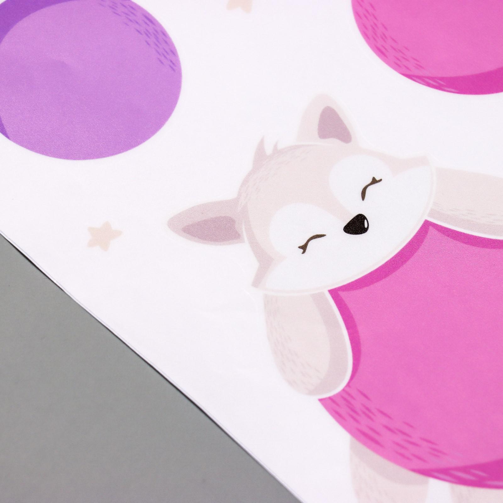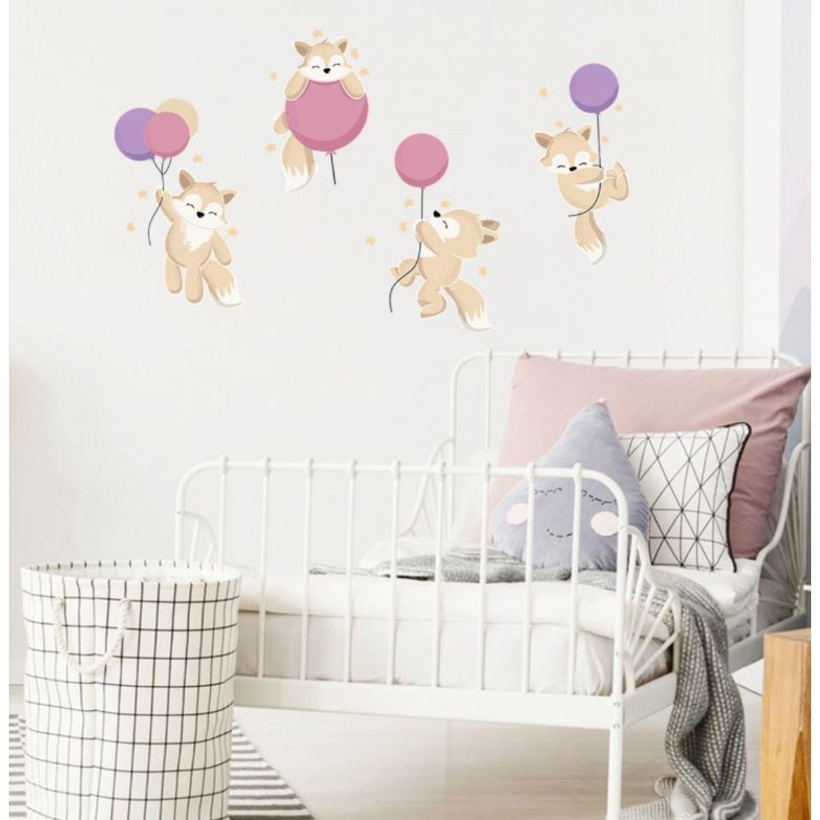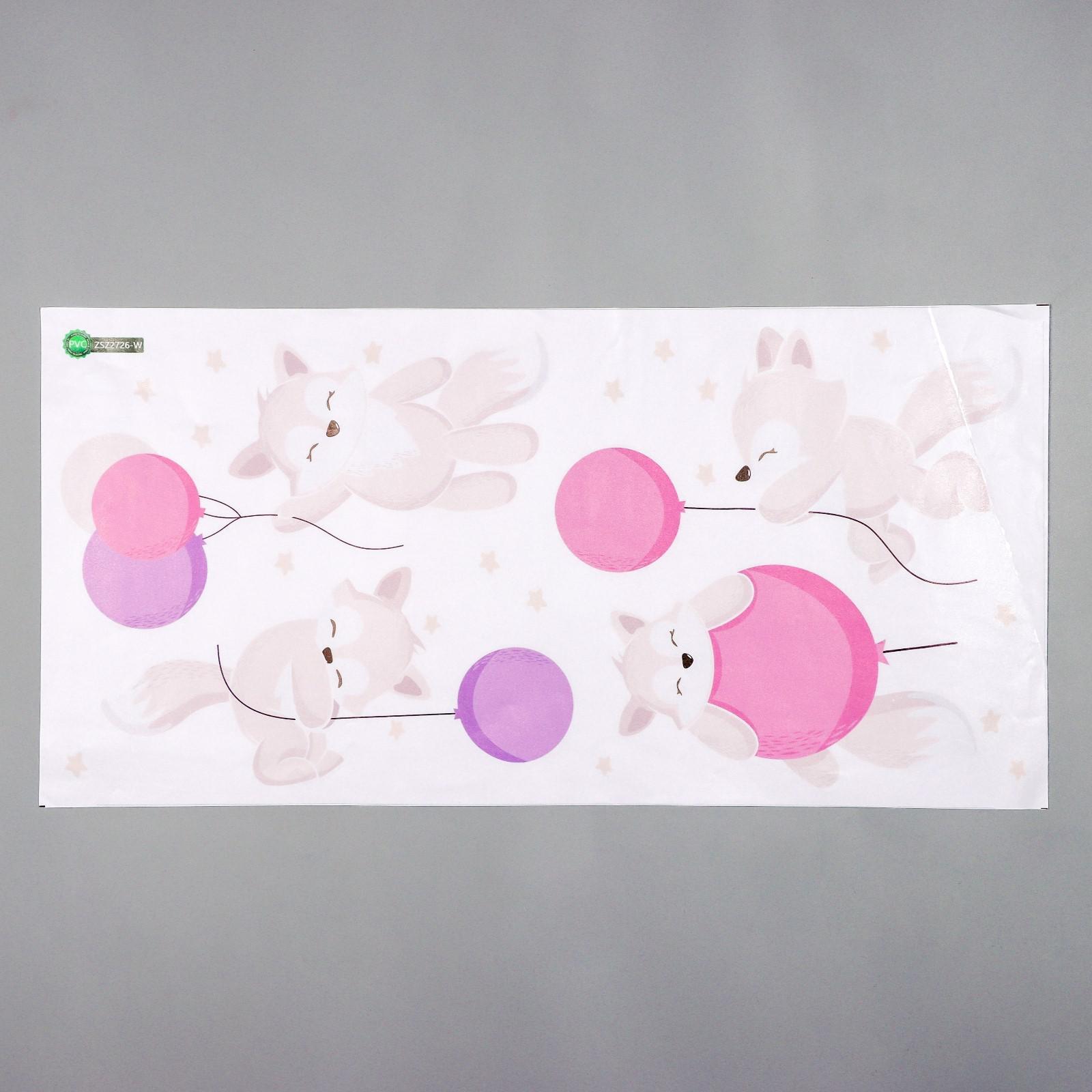 Наклейка пластик интерьерная цветная "Лисята и воздушные шарики" 30х60 см