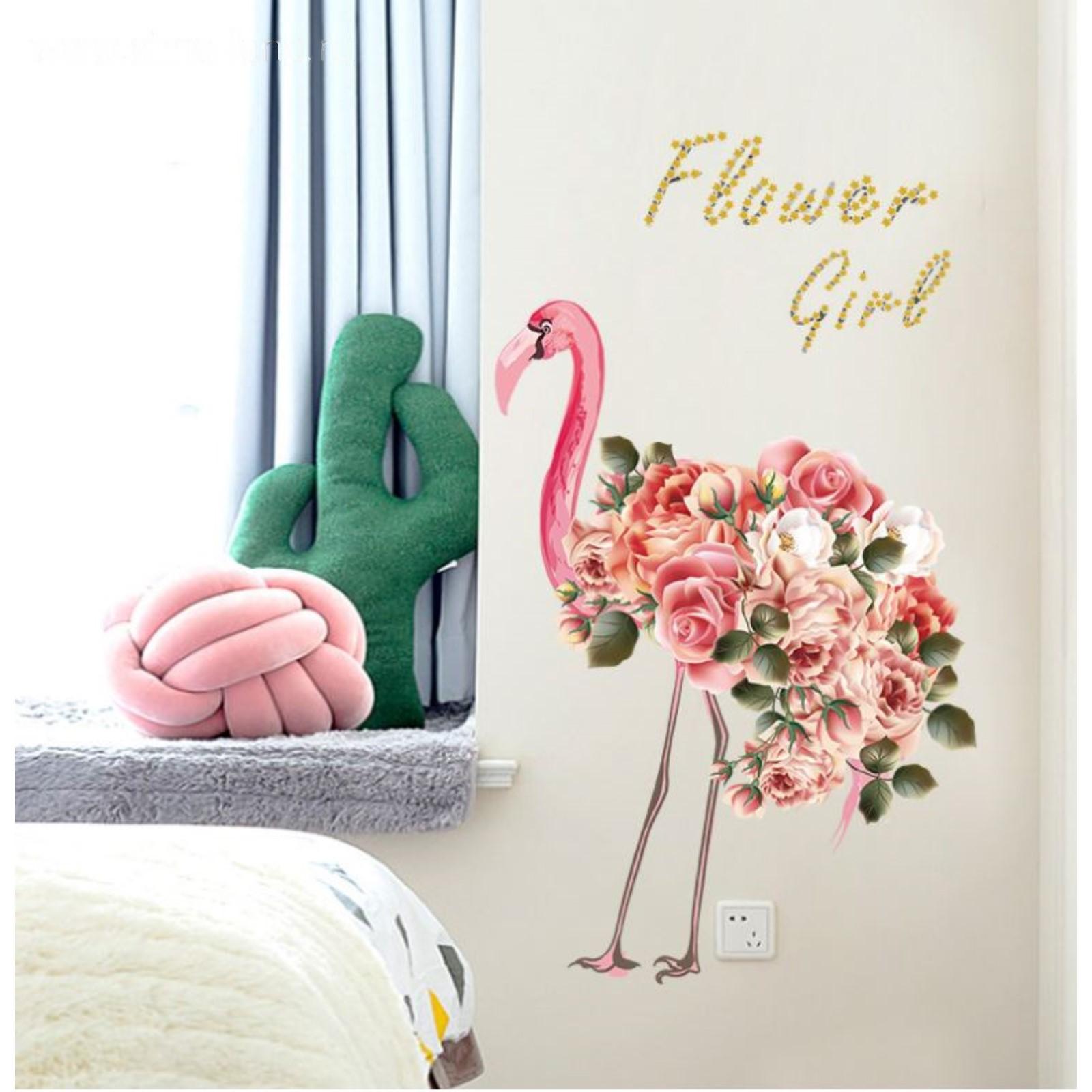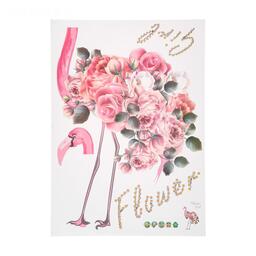 Наклейка пластик интерьерная "Фламинго с розами на хвосте" 50х70 см
