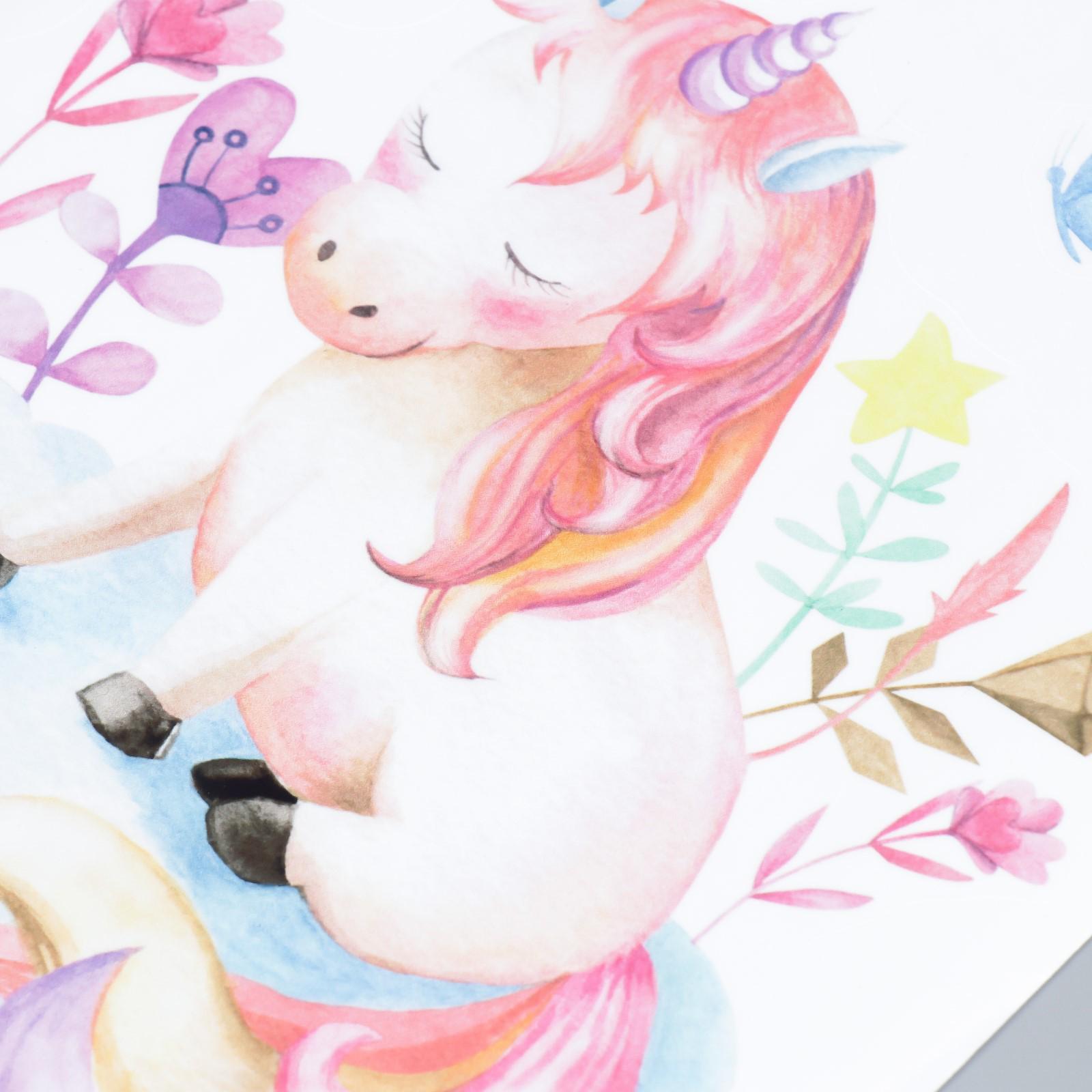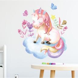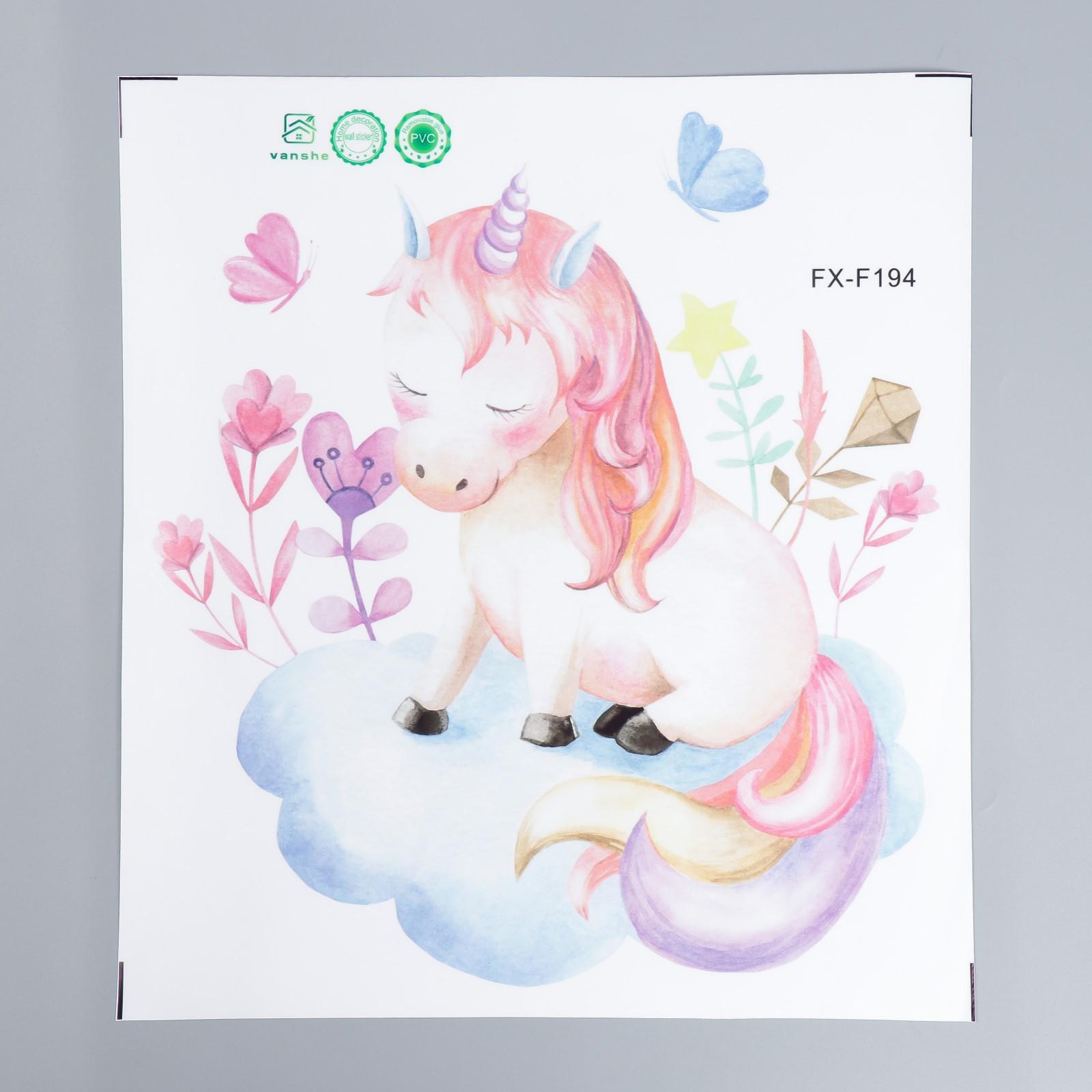 Наклейка пластик интерьерная цветная "Единорожка на облачке с цветами" 29х32 см