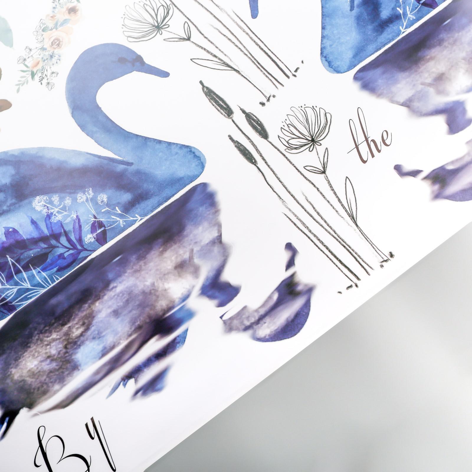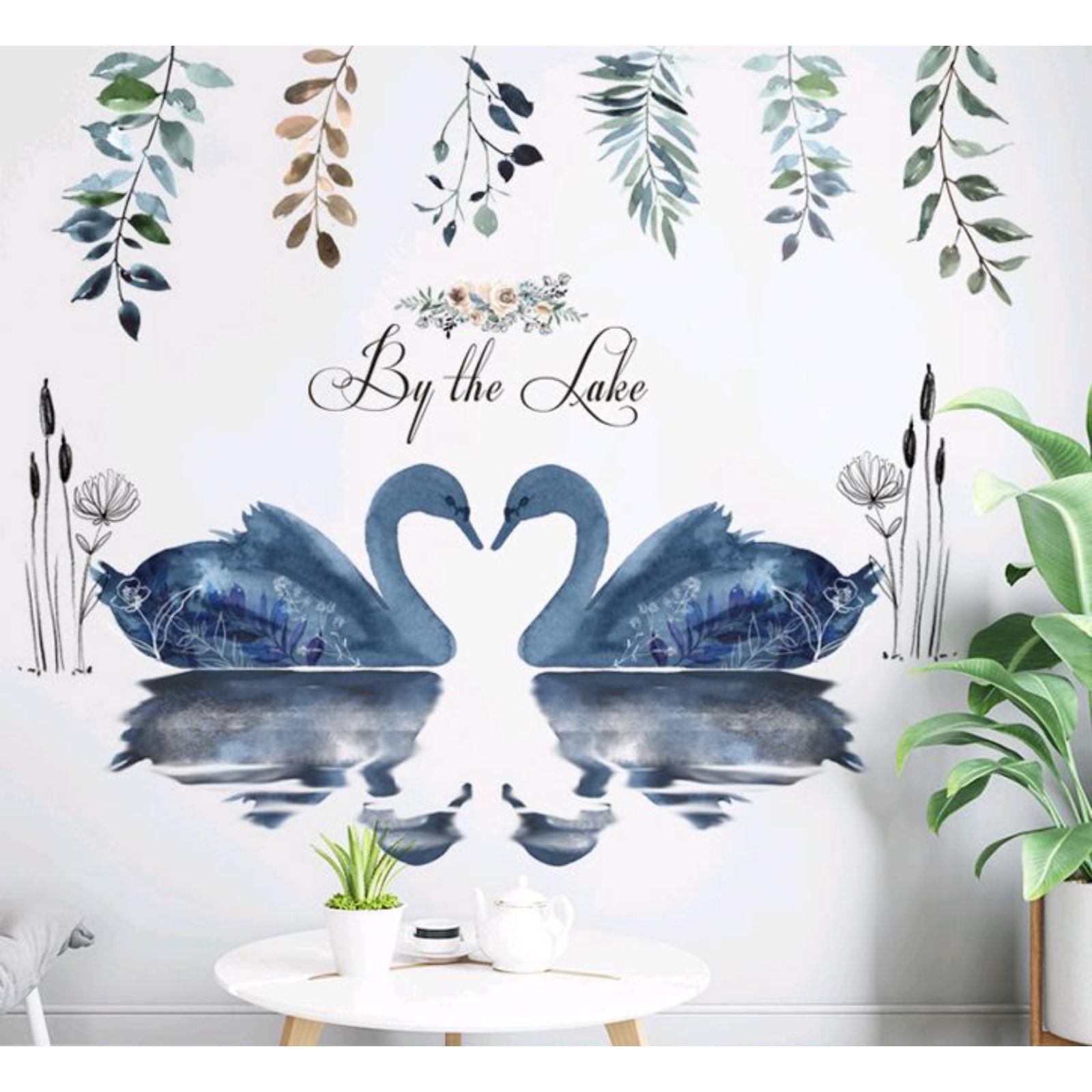 Наклейка пластик интерьерная цветная "Синие лебеди в пруду" 60х90 см