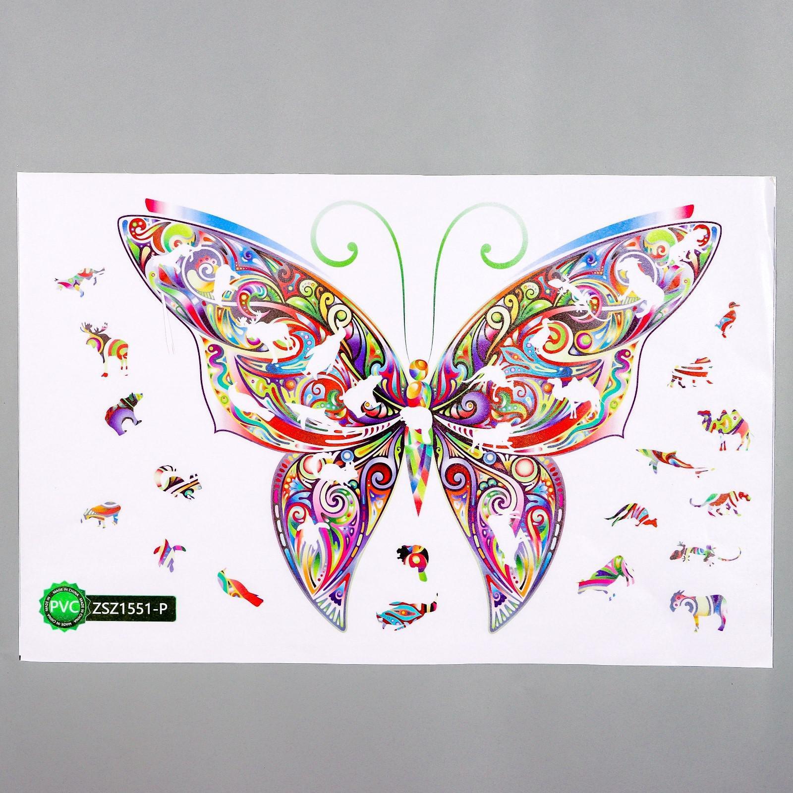 Наклейка пластик интерьерная цветная пазл "Бабочка" 30х45 см