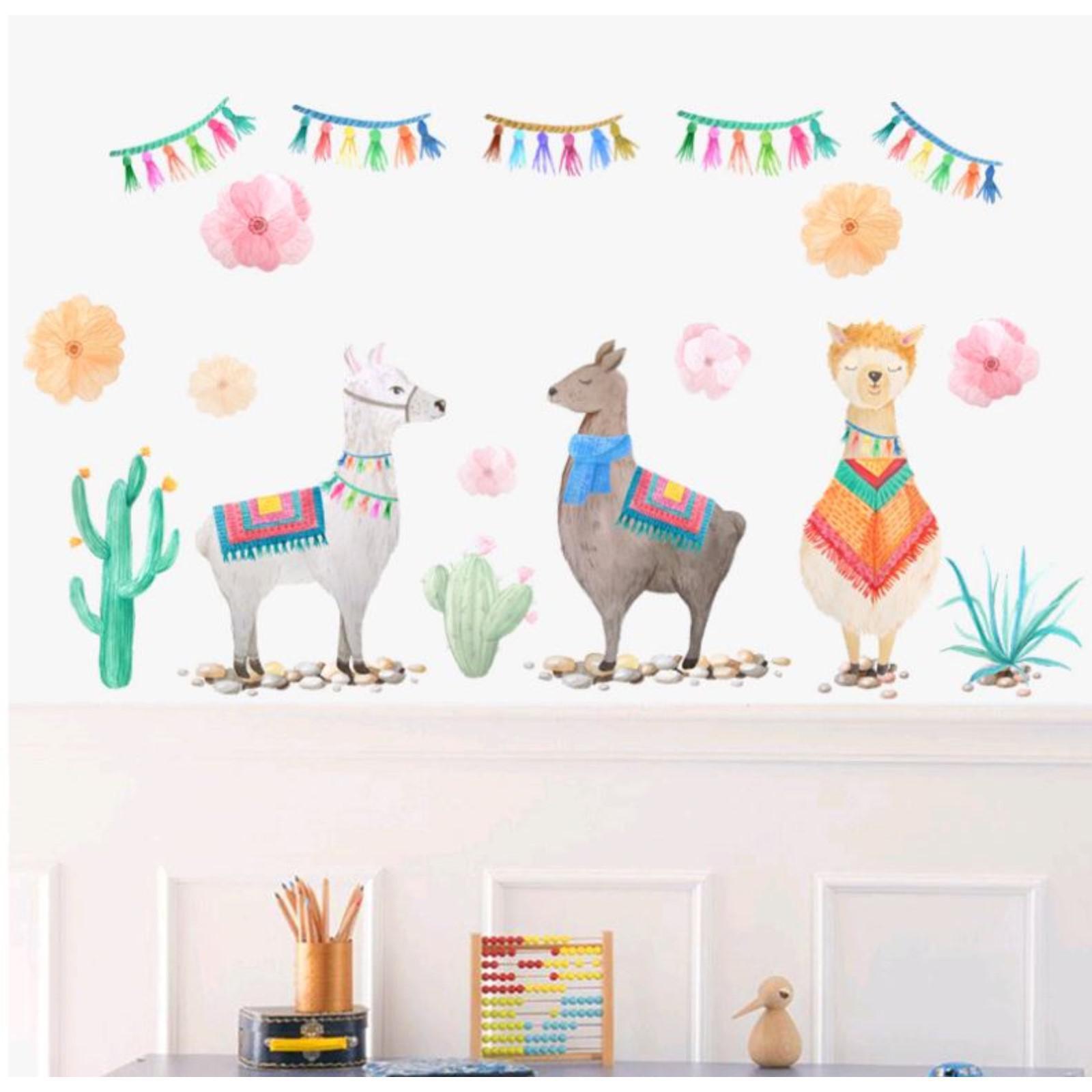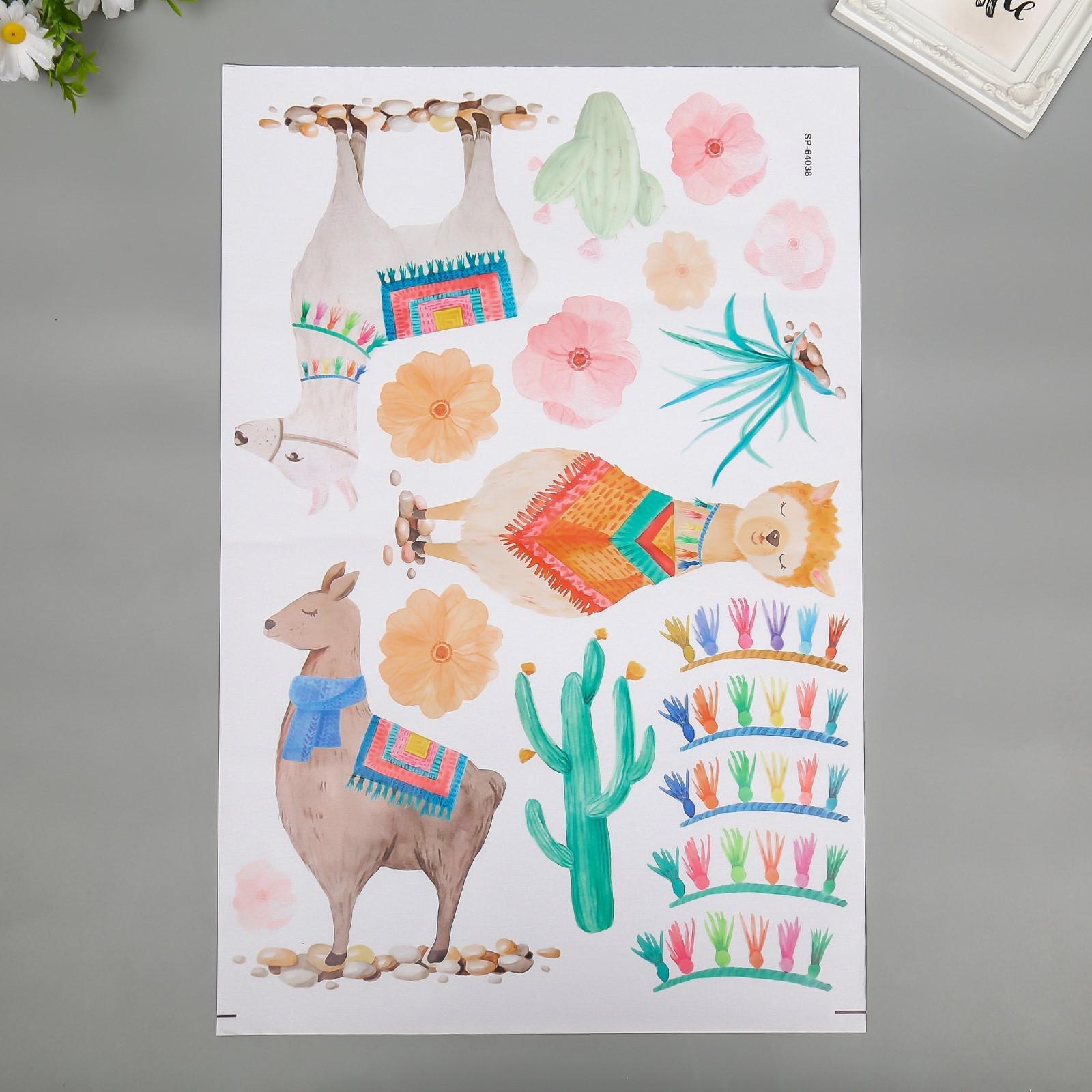 Наклейка пластик интерьерная цветная "Ламы и кактусы" 40х60 см