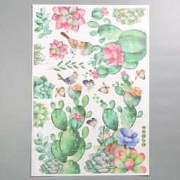 Наклейка пластик интерьерная "Суккуленты" 60х90 см, МИКС