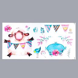 Наклейка пластик интерьерная цветная "Барашек и цветочки" 30х60 см
