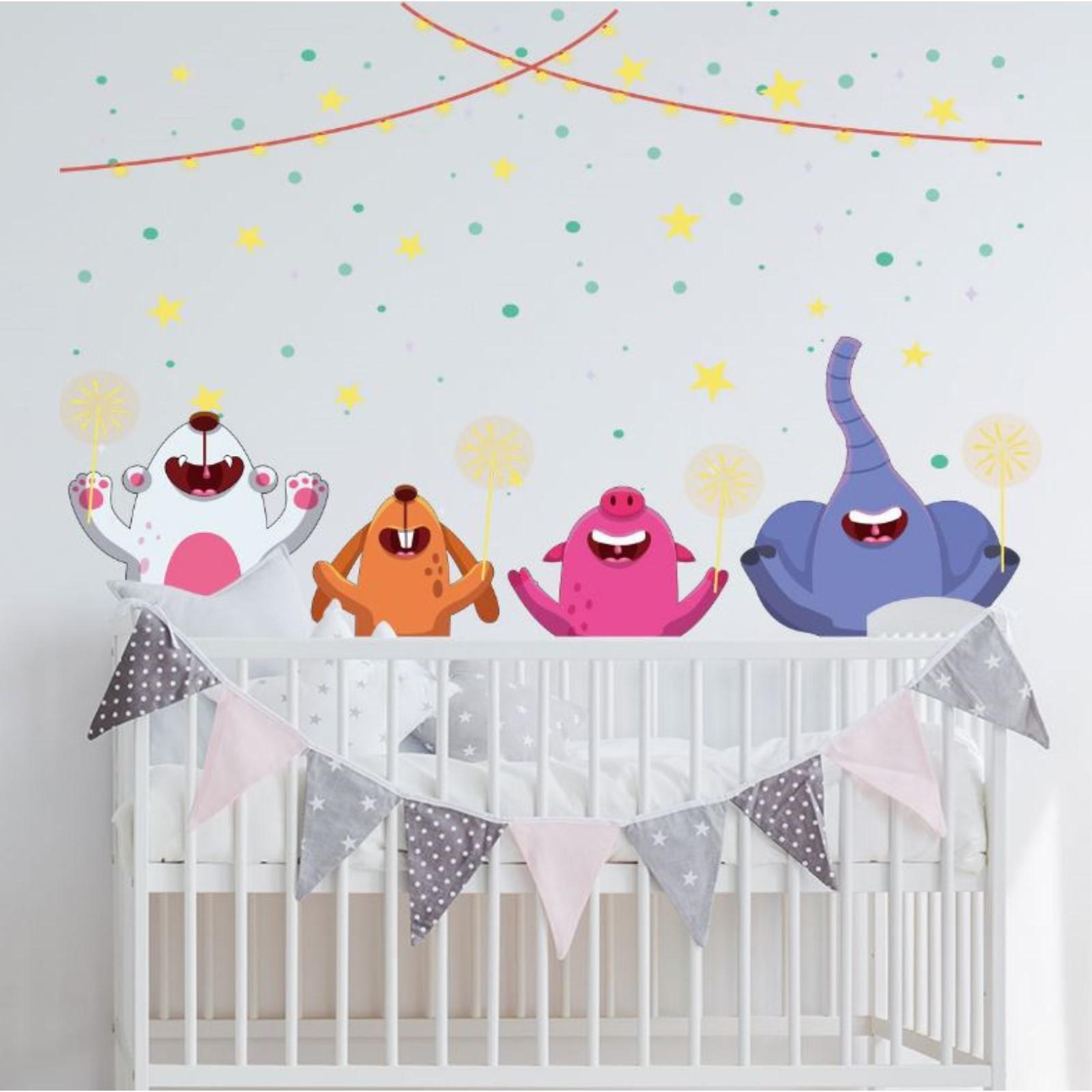 Наклейка пластик интерьерная цветная "Звери - веселье" 50х70 см