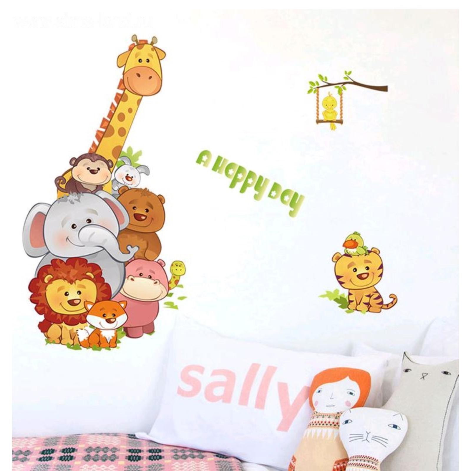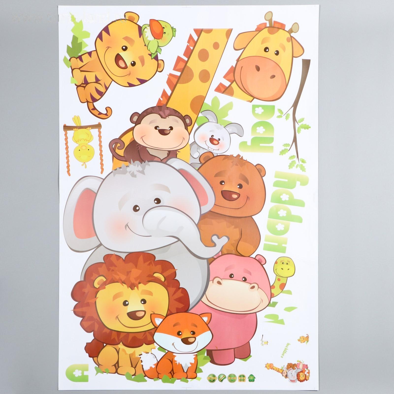 Наклейка пластик интерьерная "Милые зверята" 60х90 см