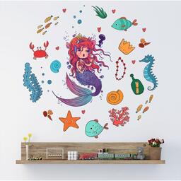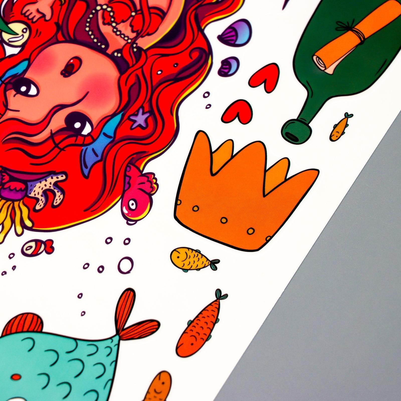 Наклейка пластик интерьерная цветная "Русалочка и подводный мир" 25х60 см