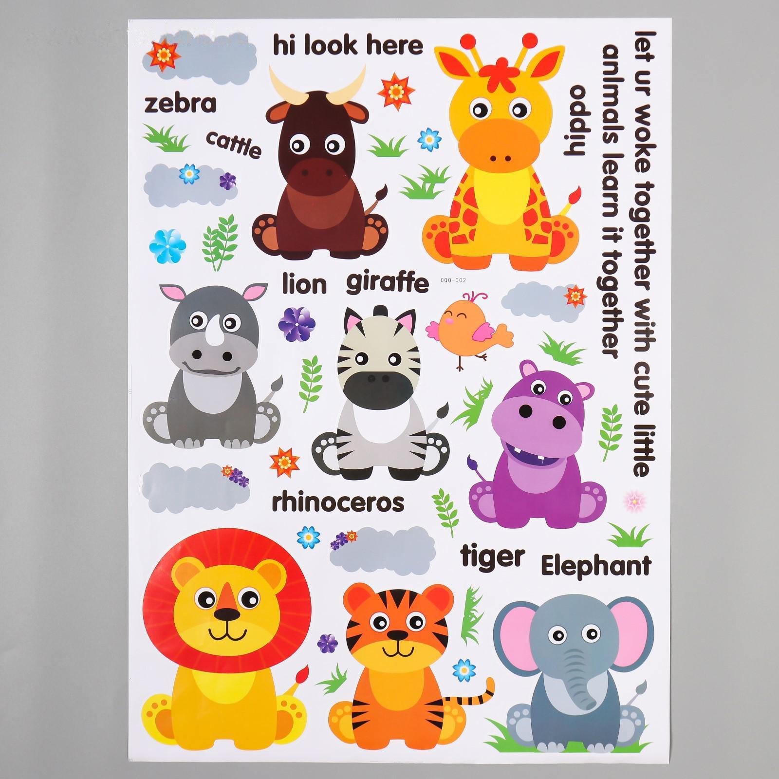 Наклейка пластик интерьерная цветная "Зверушки-малыши" 50х70 см