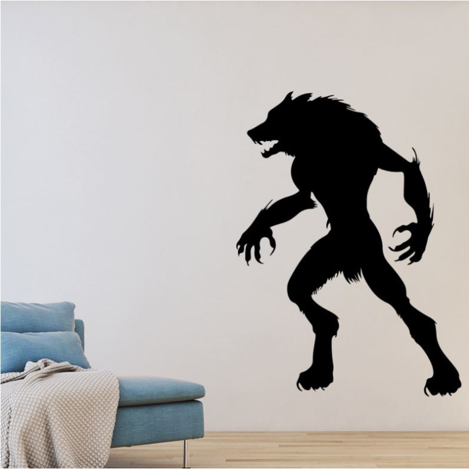 Наклейка пластик интерьерная чёрная "Волк-оборотень" 57х42 см