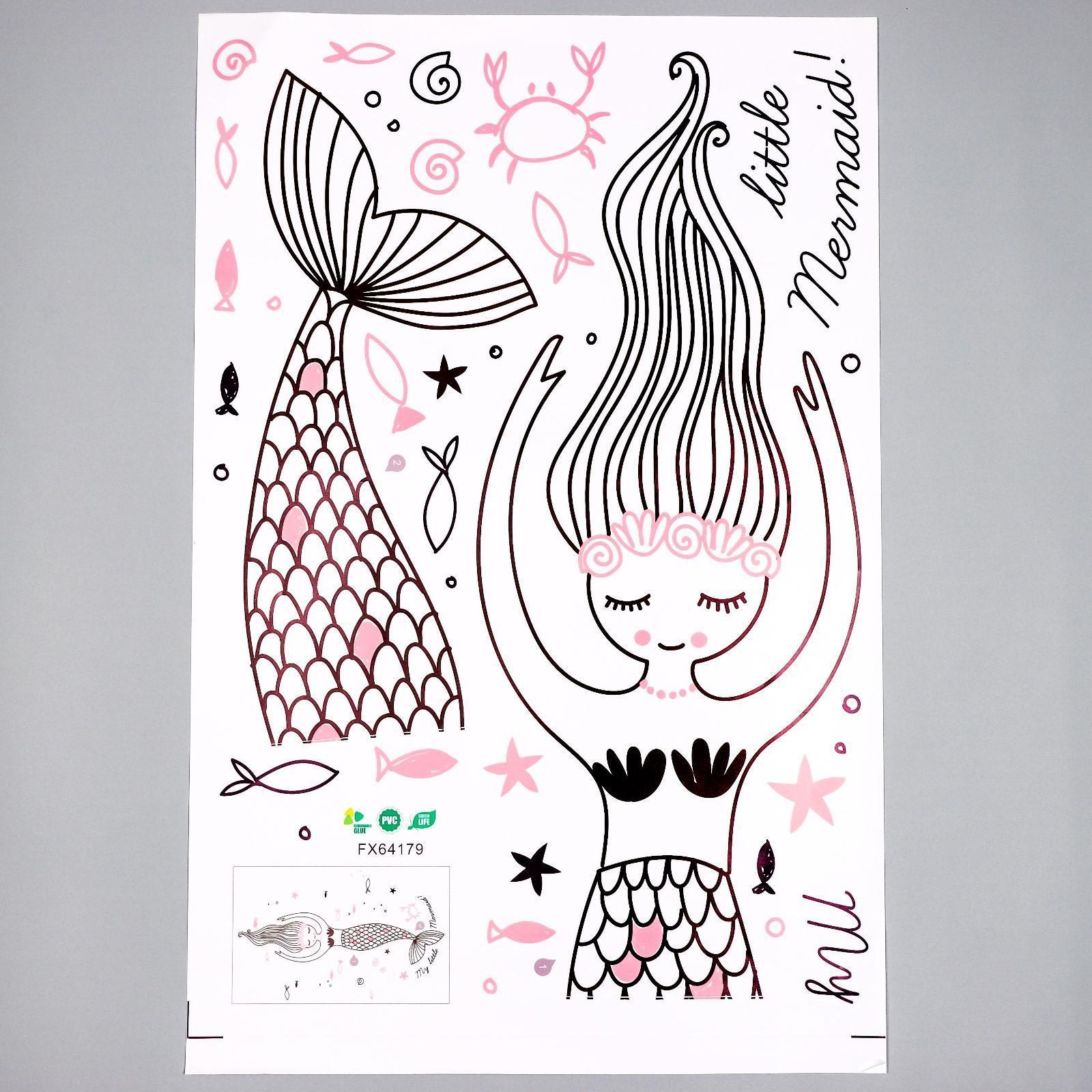 Наклейка пластик интерьерная цветная "Русалочка" 40х60 см