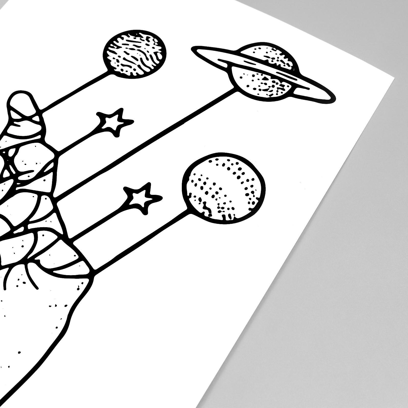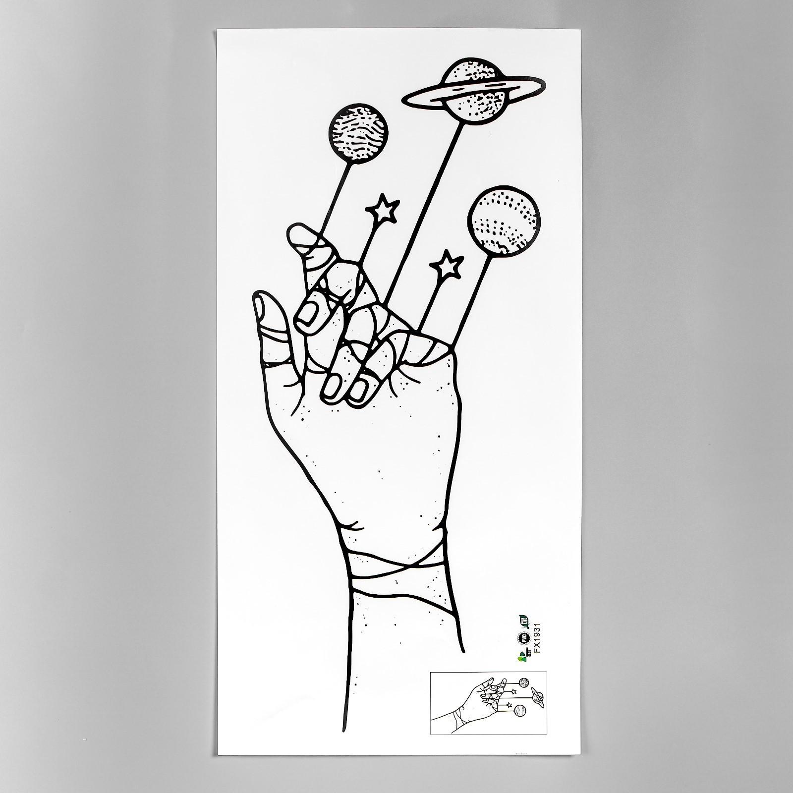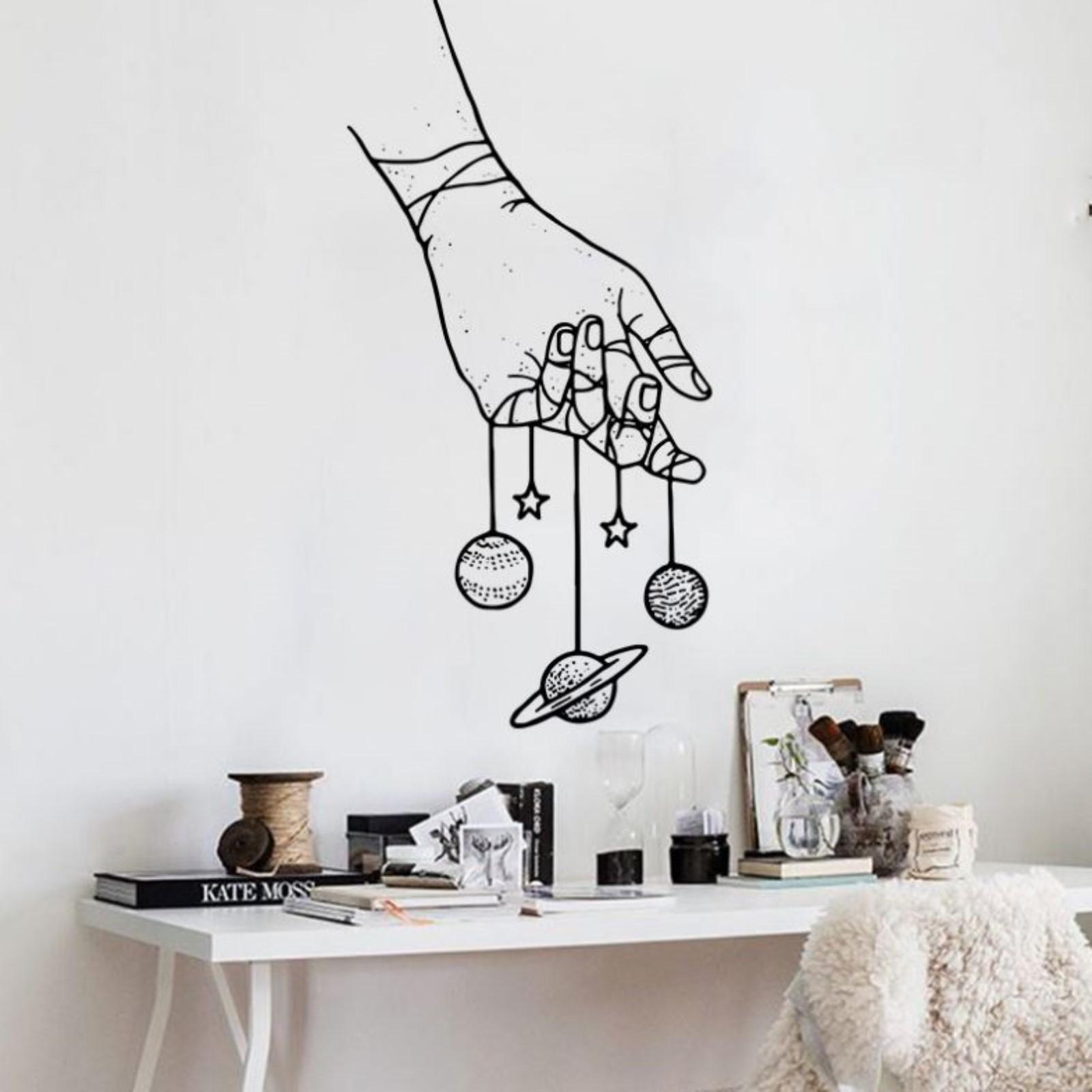 Наклейка пластик интерьерная чёрная "Планеты в руке" 26,3х58 см
