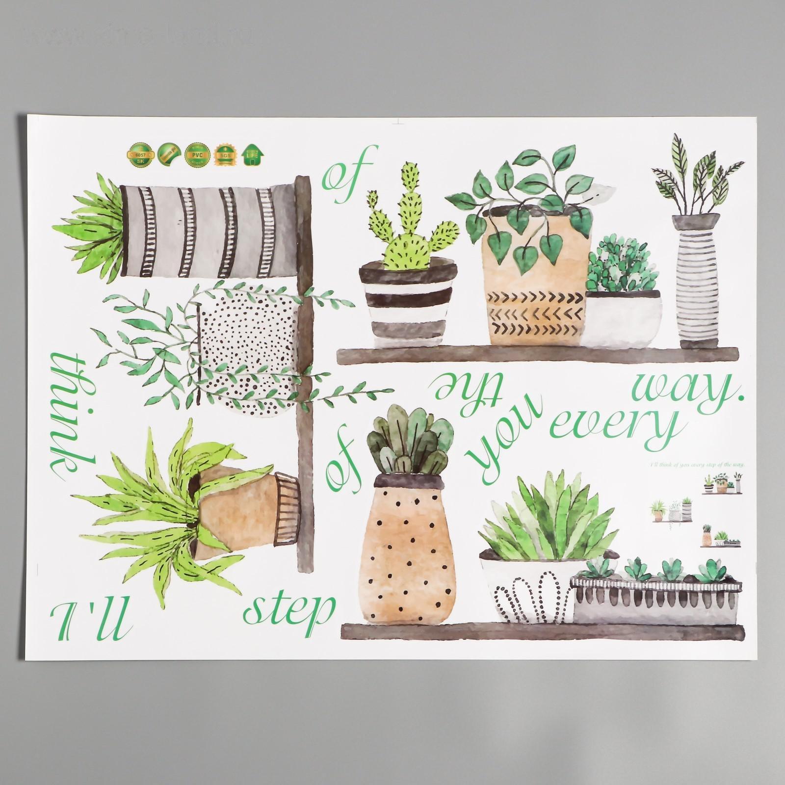 Наклейка пластик интерьерная "Растения в горшочках" 45х60 см