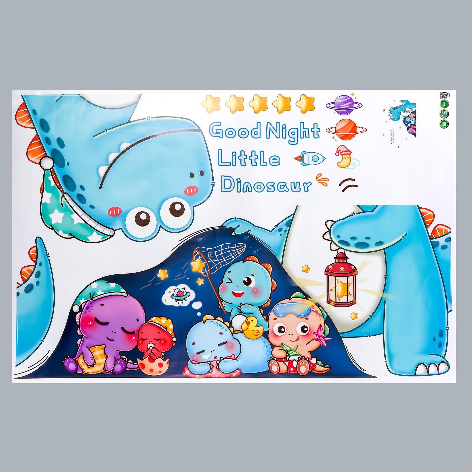 Наклейка пластик интерьерная цветная "Динозаврики в походе" 60х90 см