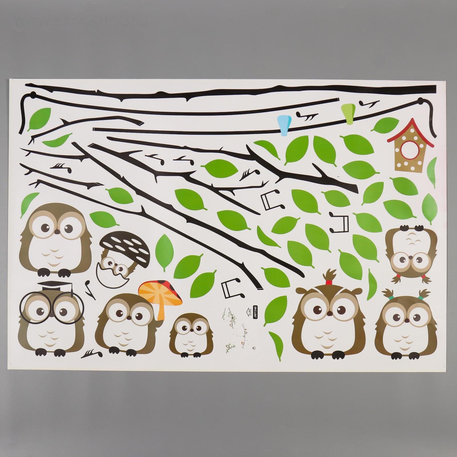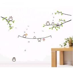 Наклейка пластик интерьерная цветная "Совушки на ветвях" 60х90 см