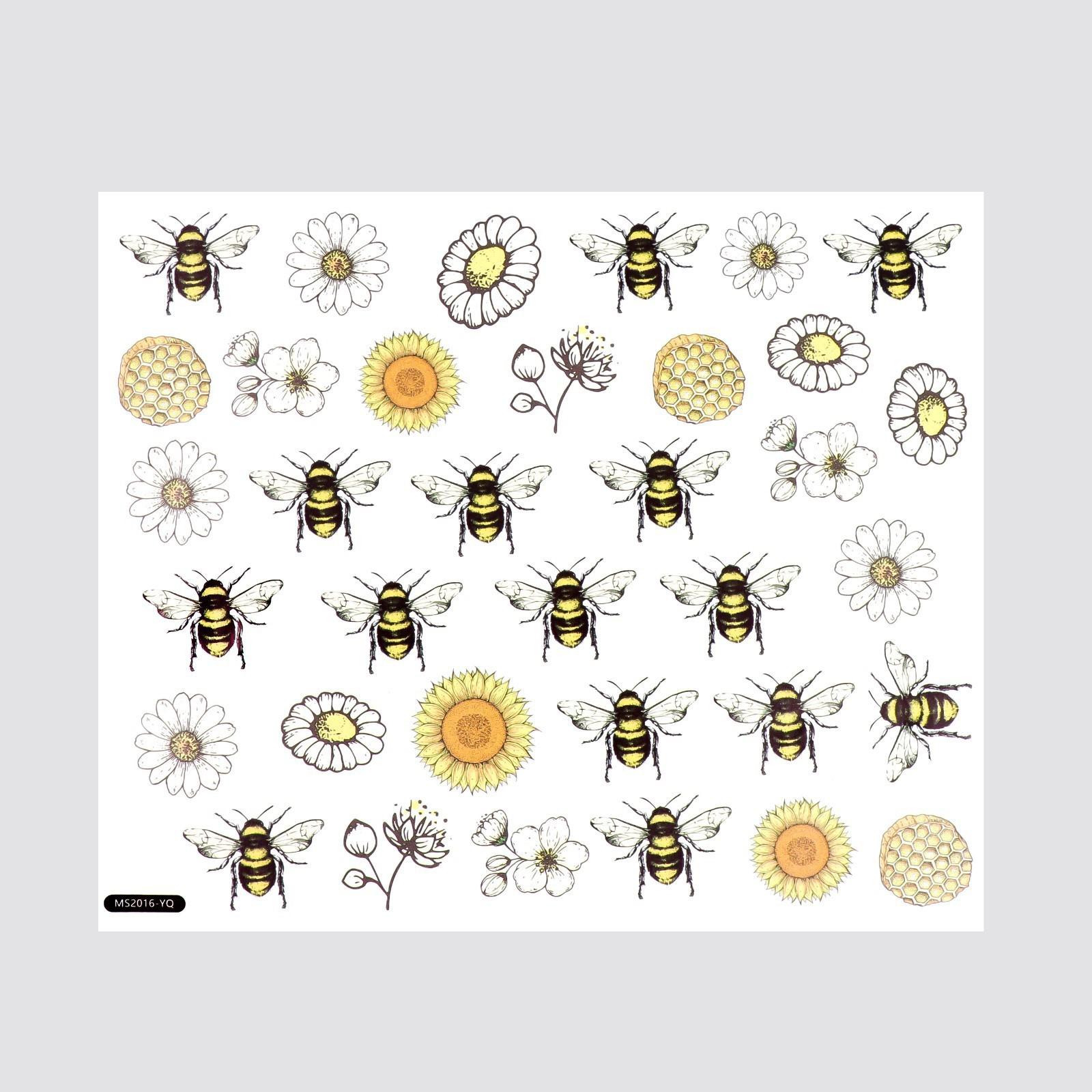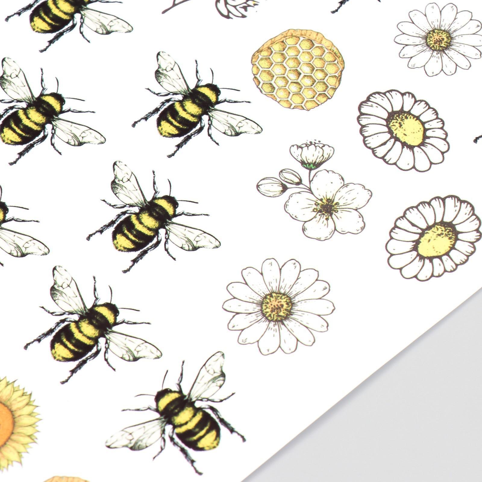 Наклейка пластик интерьерная цветная "Пчёлки, цветы и мёд" 30х25 см