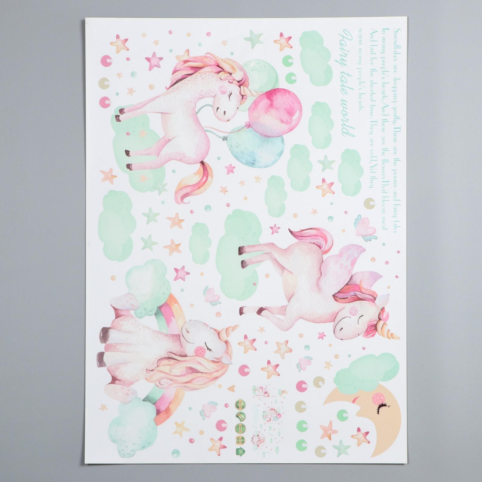 Наклейка пластик интерьерная "Единорожки" 50х70 см