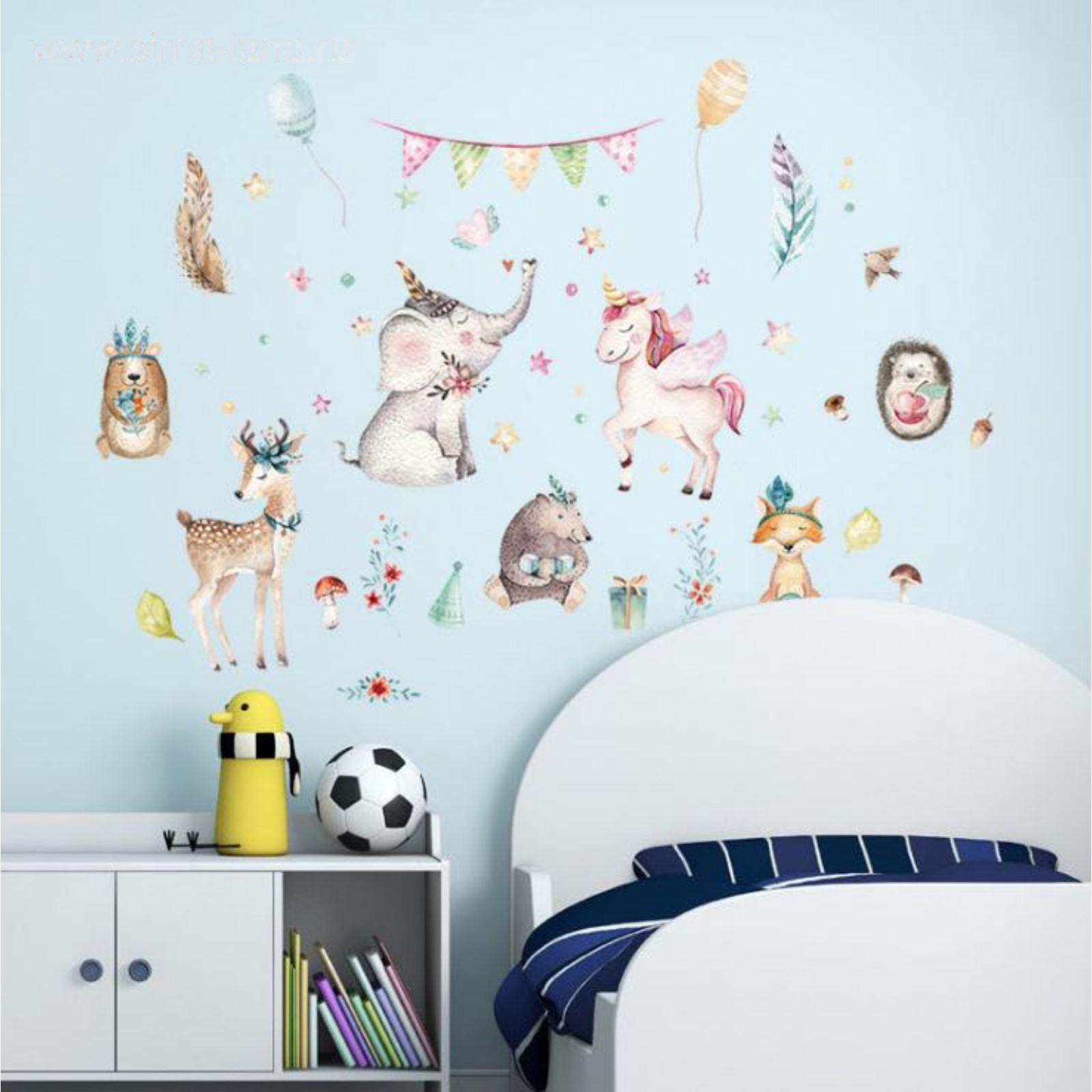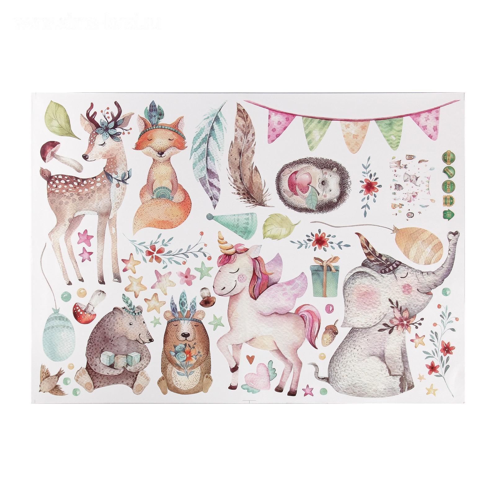 Наклейка пластик интерьерная "Зверята" 50х70 см