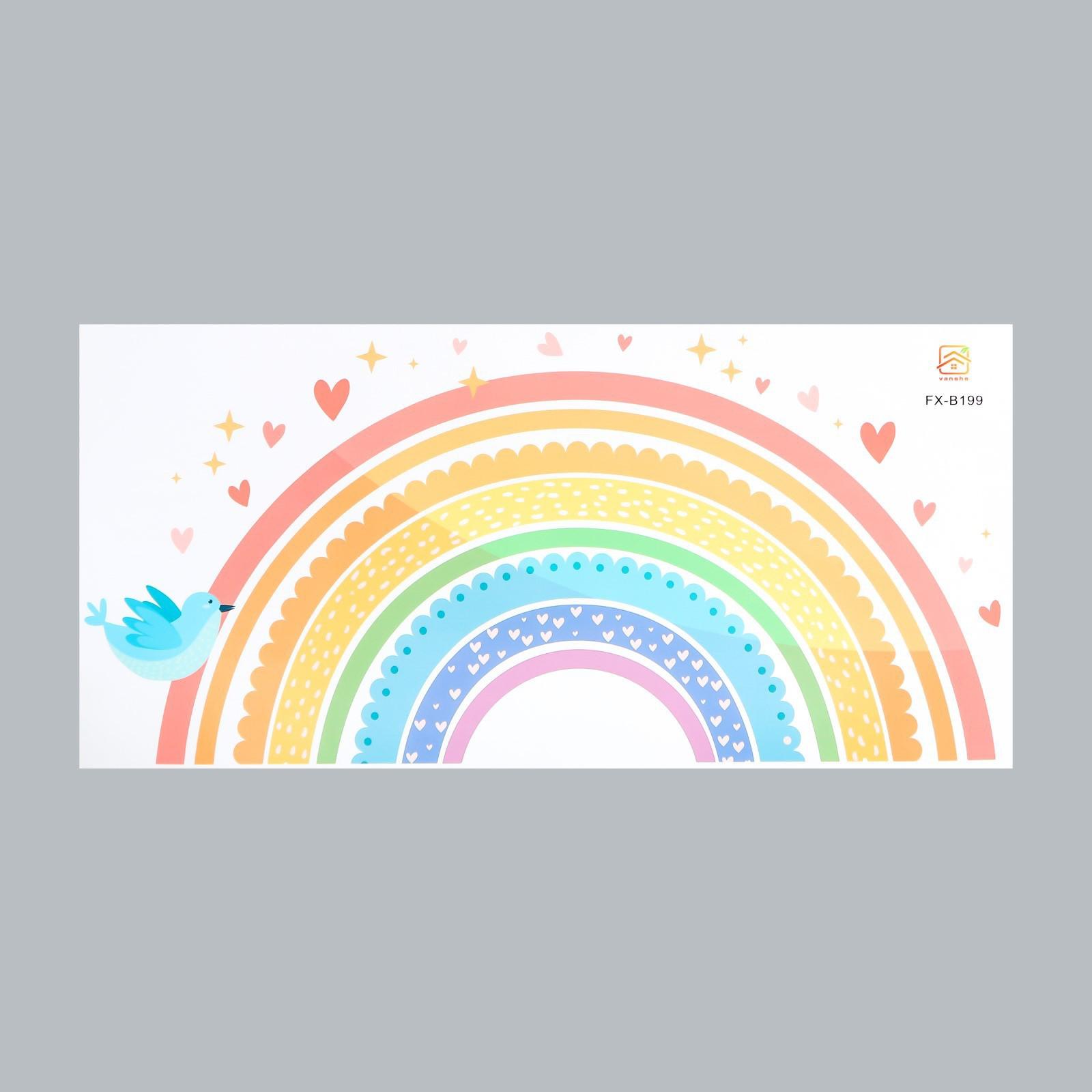 Наклейка пластик интерьерная цветная "Разноцветная радуга с птичкой" 30х60 см