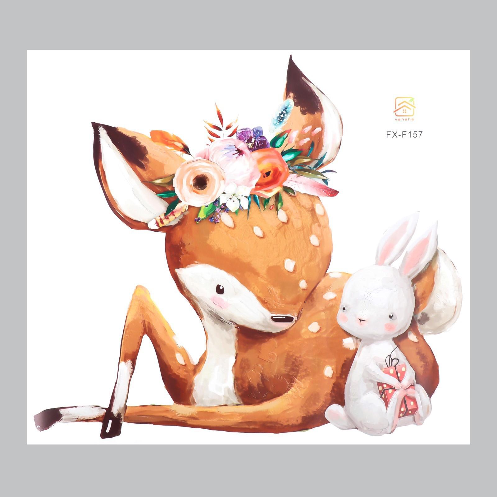 Наклейка пластик интерьерная цветная "Оленёнок с зайчиком" 39х44 см