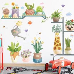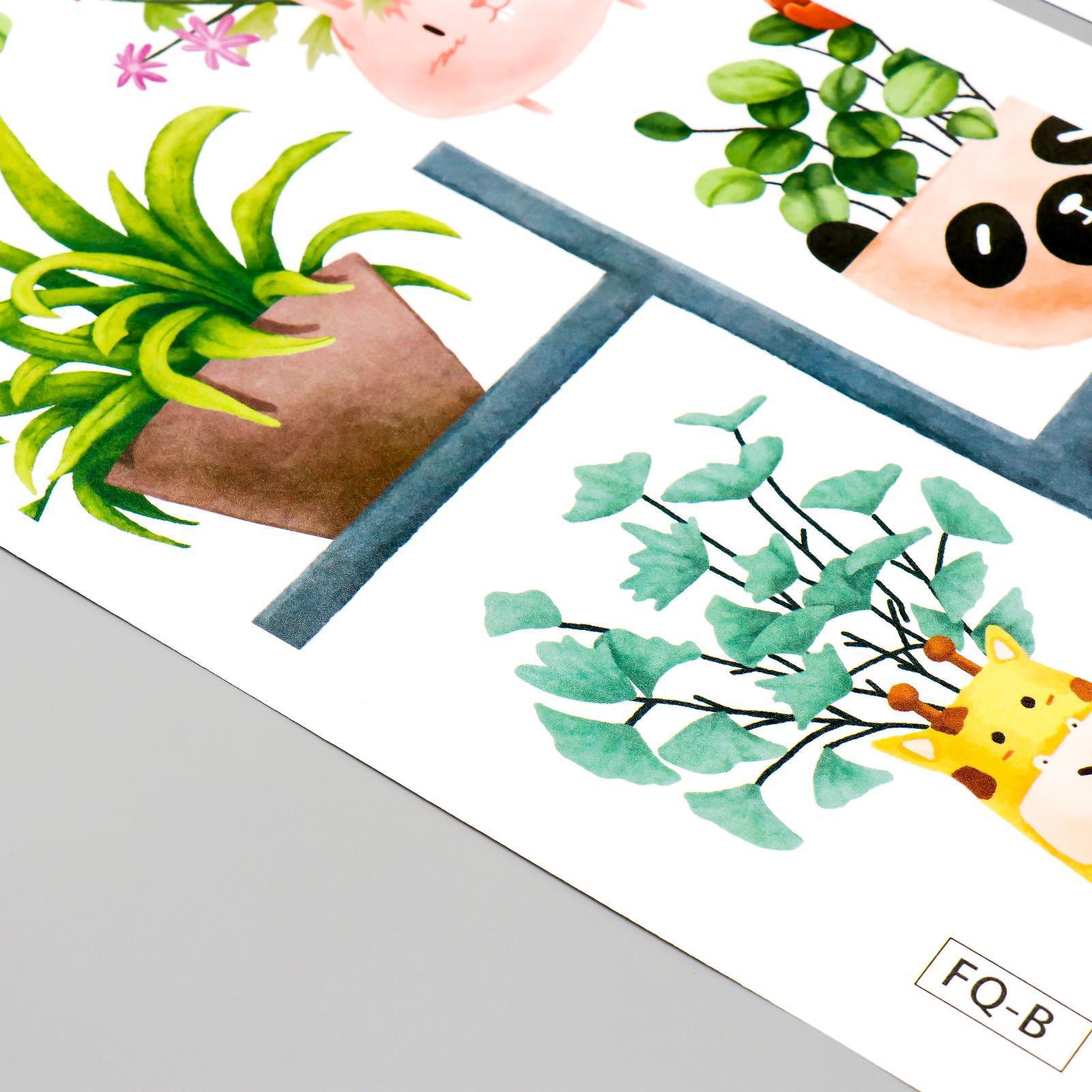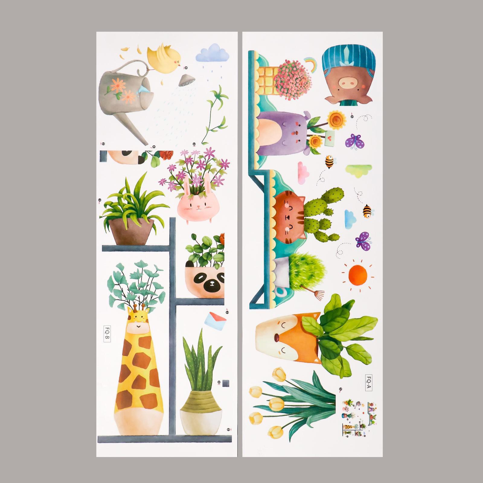 Наклейка пластик интерьерная цветная "Растения в горшочках-зверятах" 30х90 см набор 2 листа