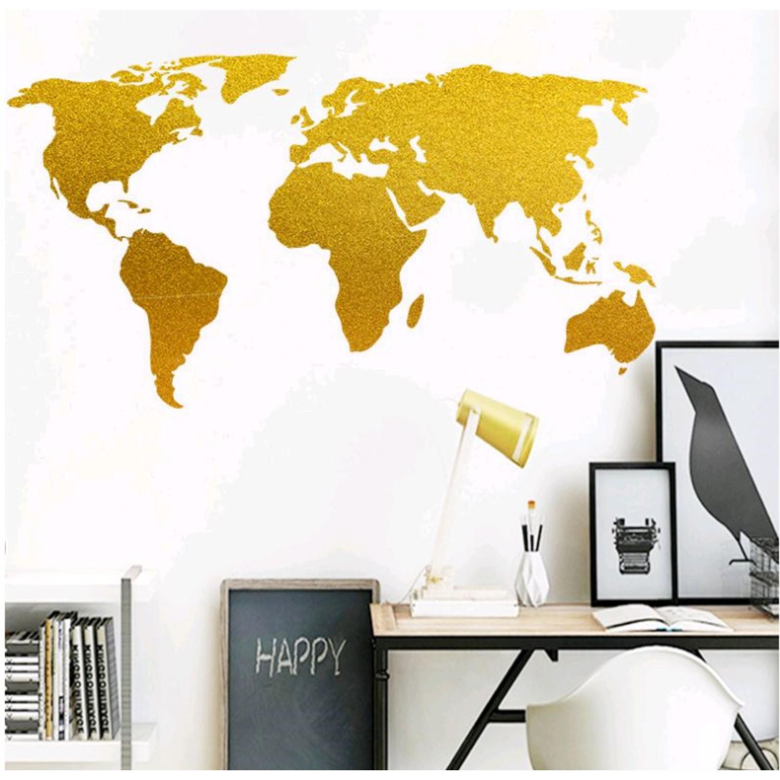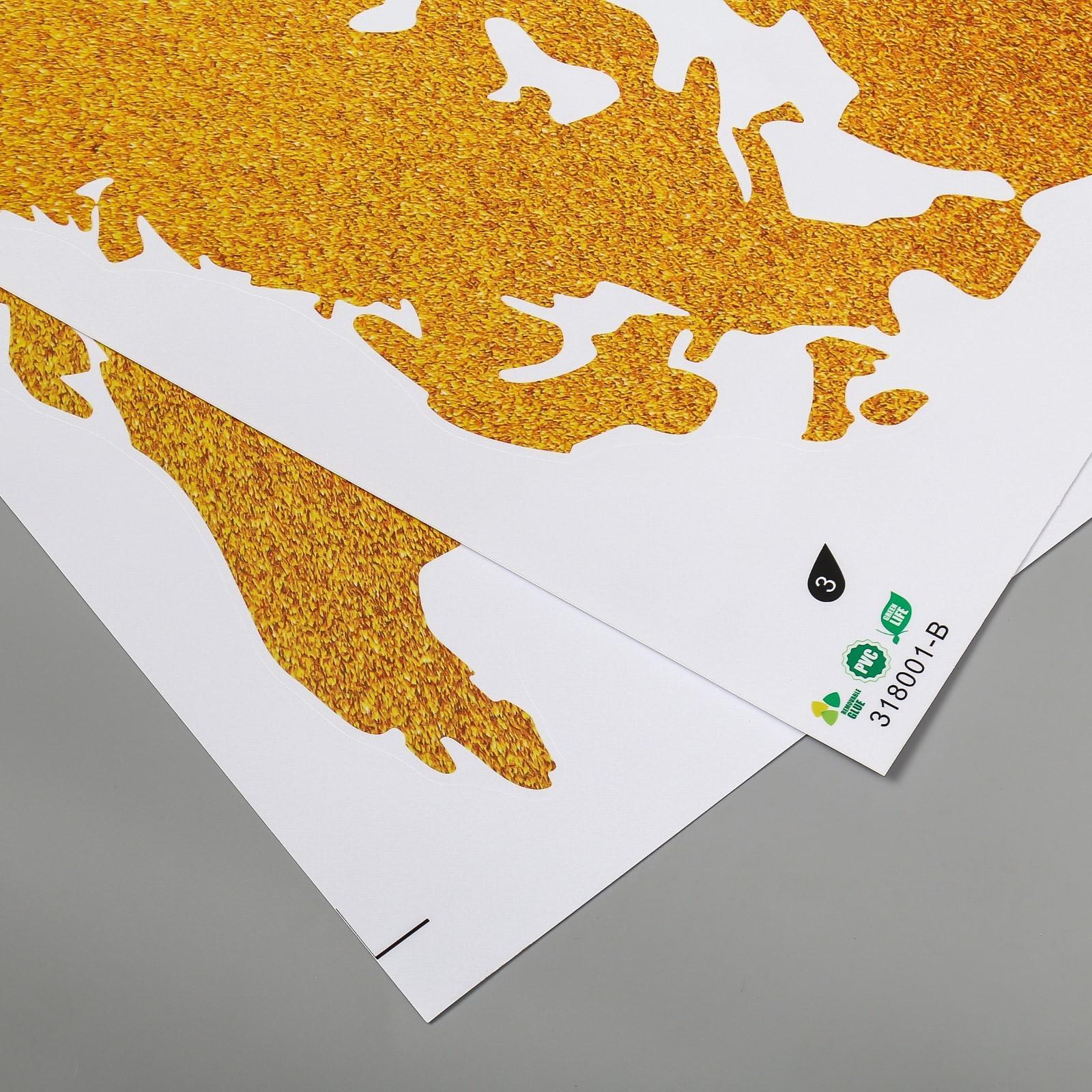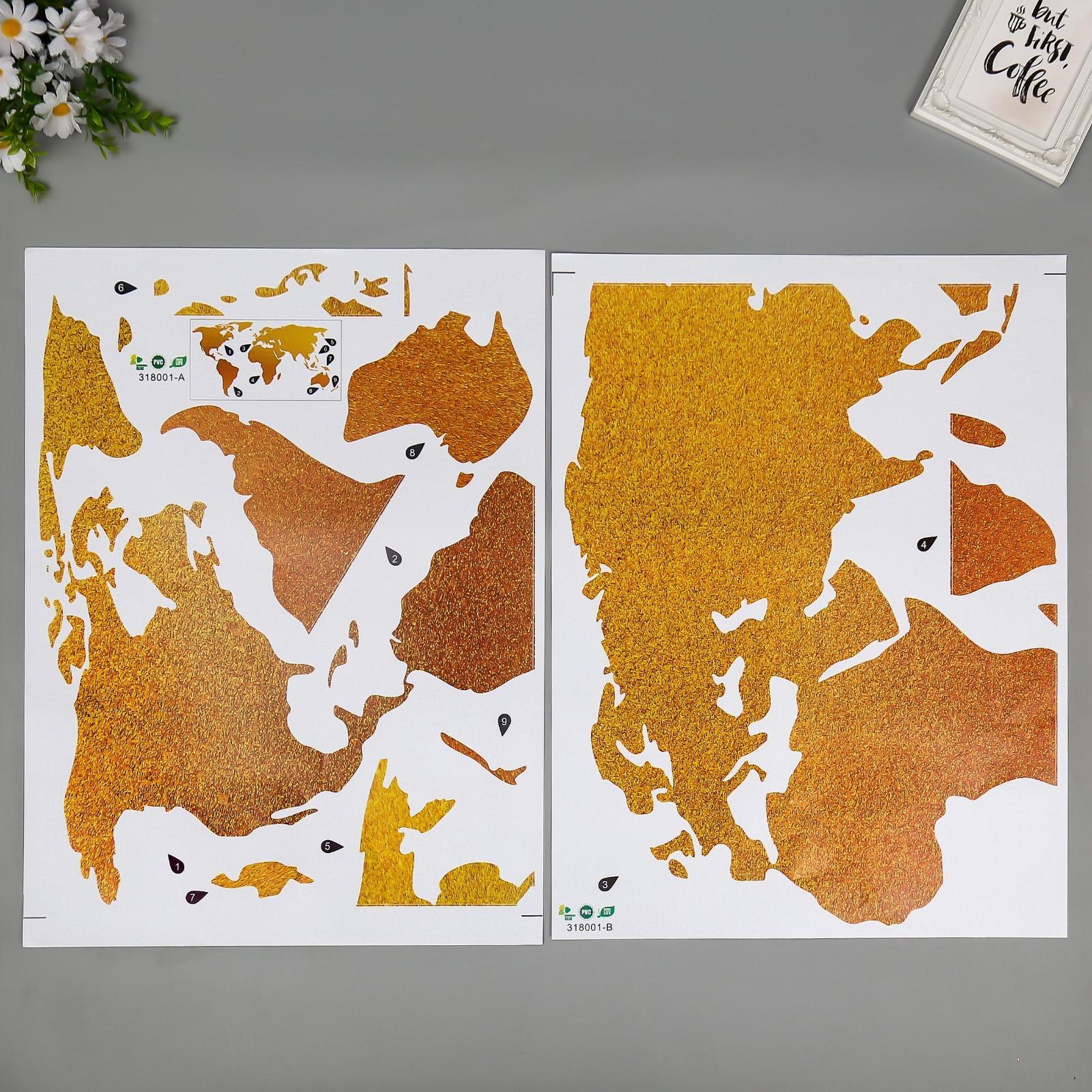 Наклейка пластик интерьерная золотая "Карта мира" набор 2 листа 45х60 см
