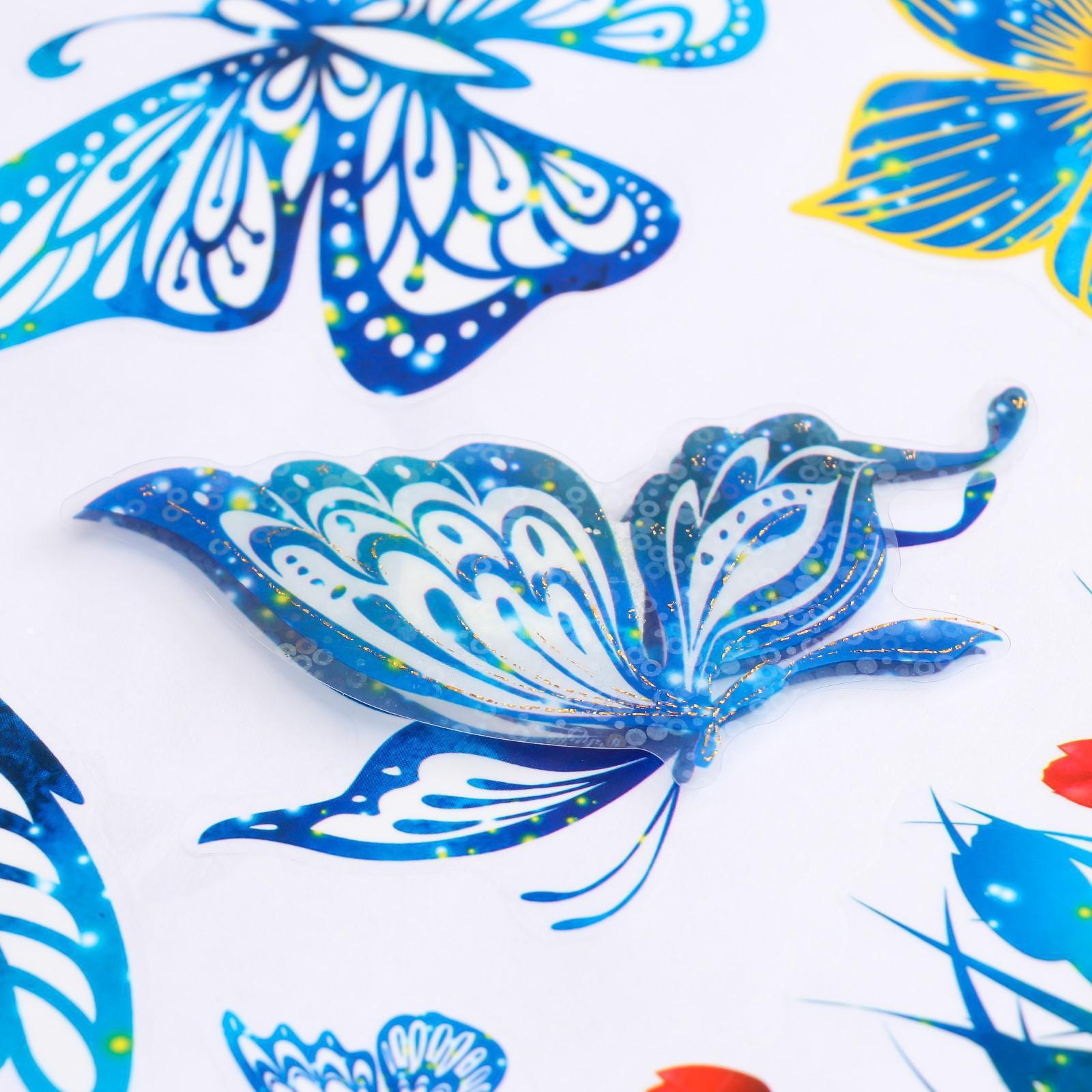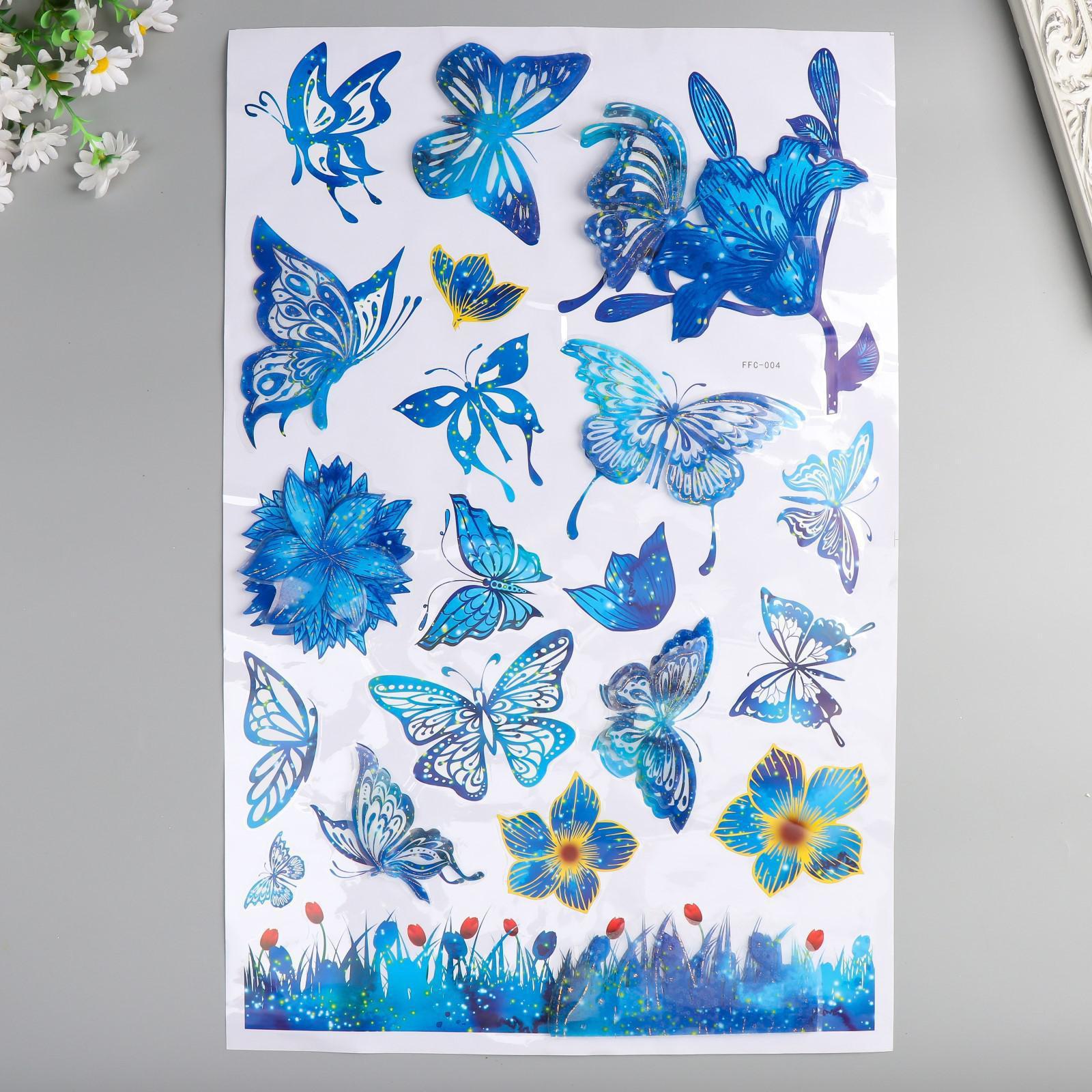 Наклейка пластик 7D "Бабочки" синяя 65х36 см