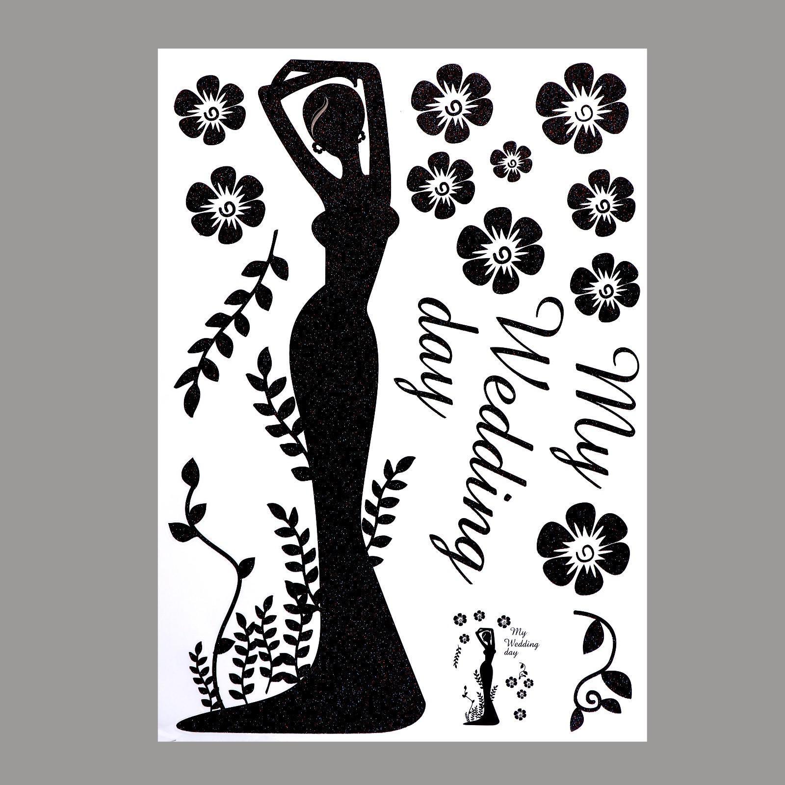 Наклейка пластик интерьерная чёрная "Девушка в вечернем платье" блёстки 50х70 см