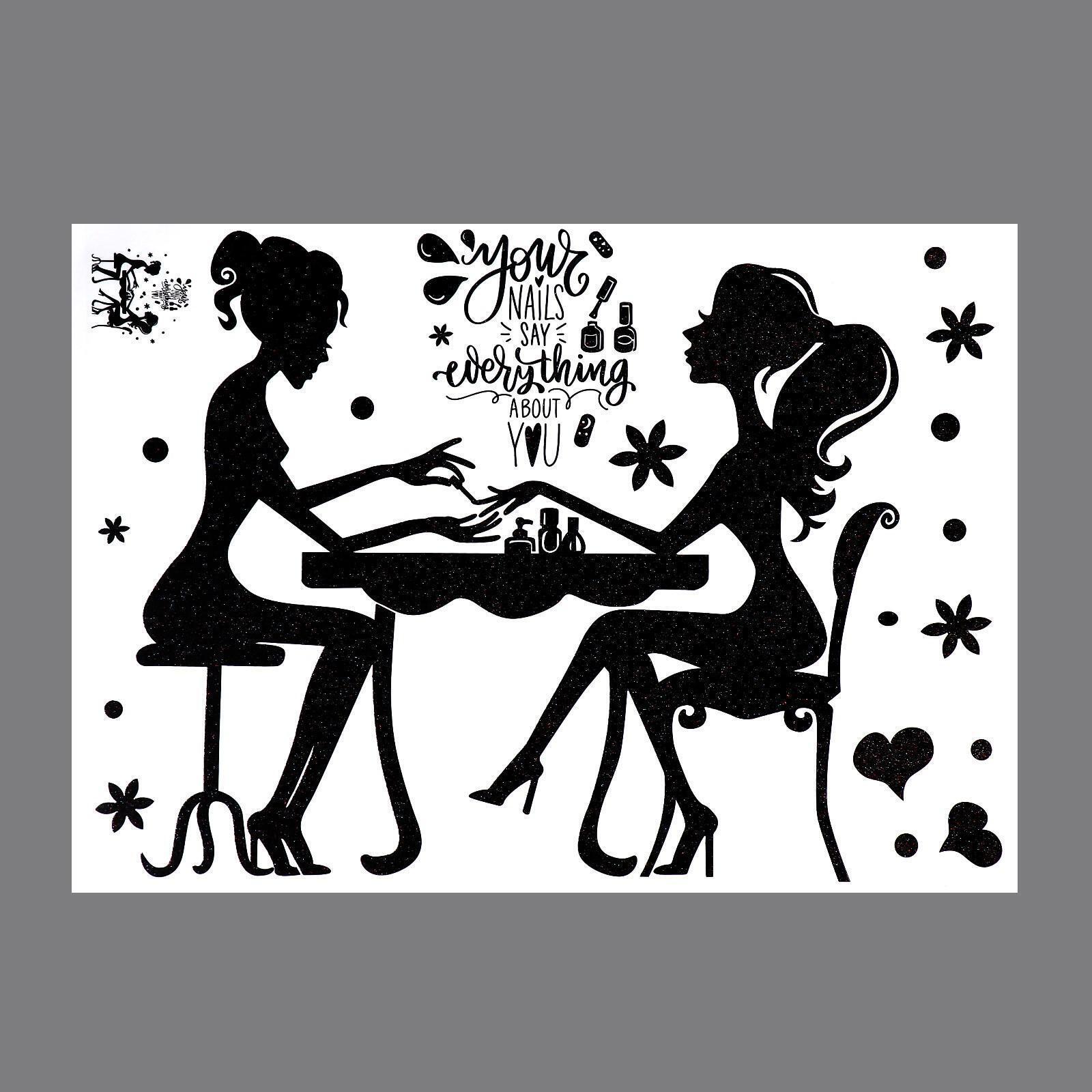 Наклейка пластик интерьерная чёрная "Две подружки" блёстки 50х70 см