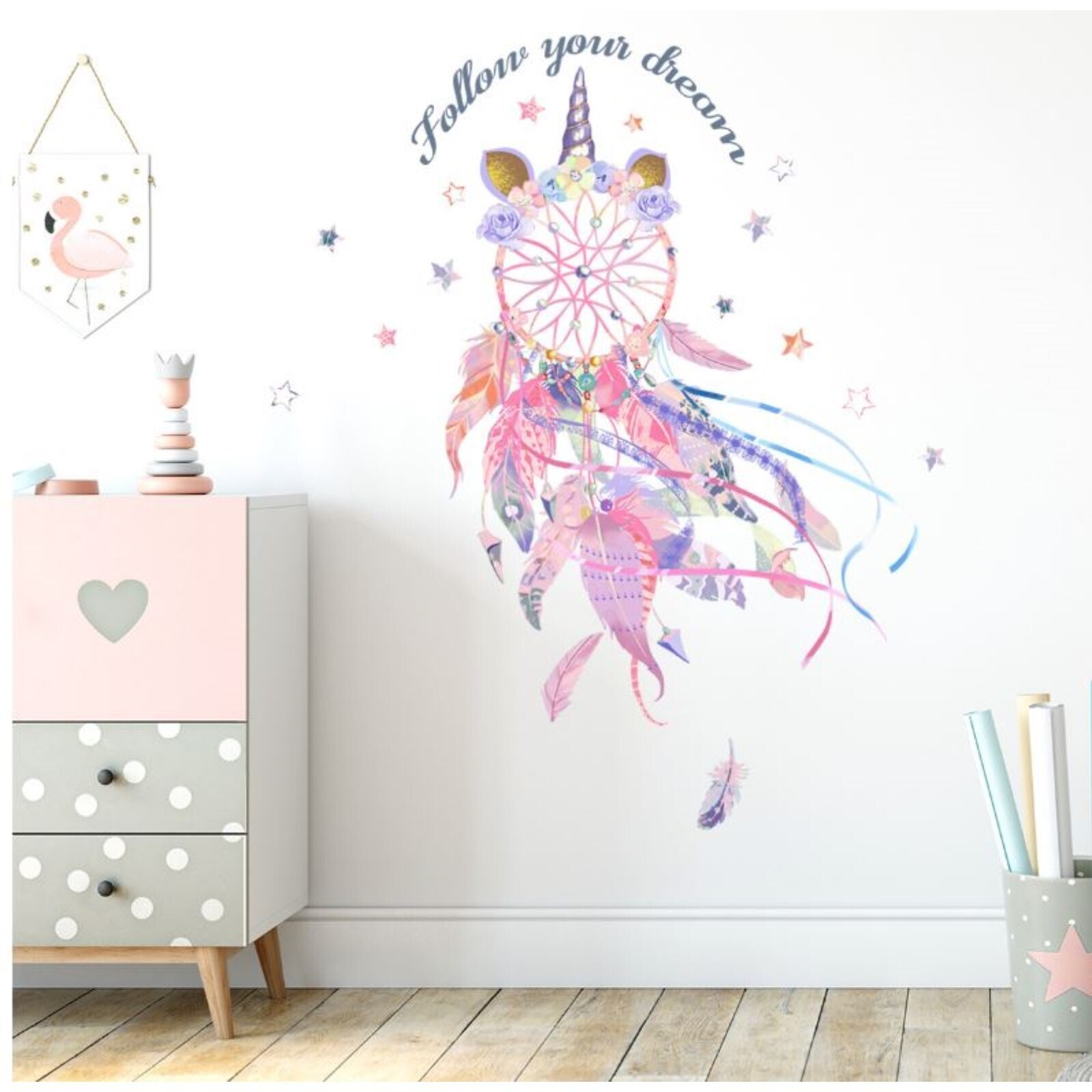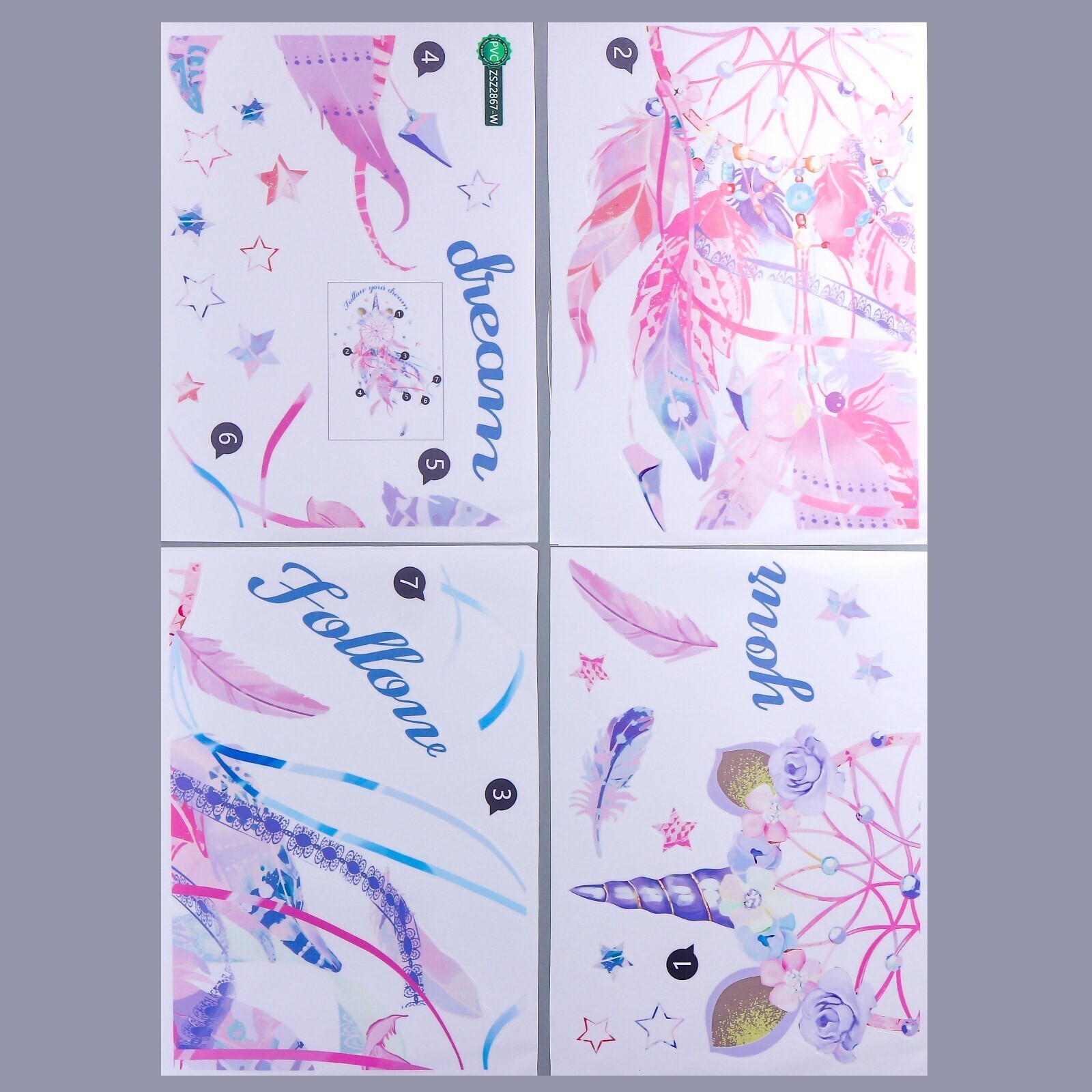 Наклейка пластик интерьерная цветная "Ловец снов - единорог" 25х35 см набор 4 листа
