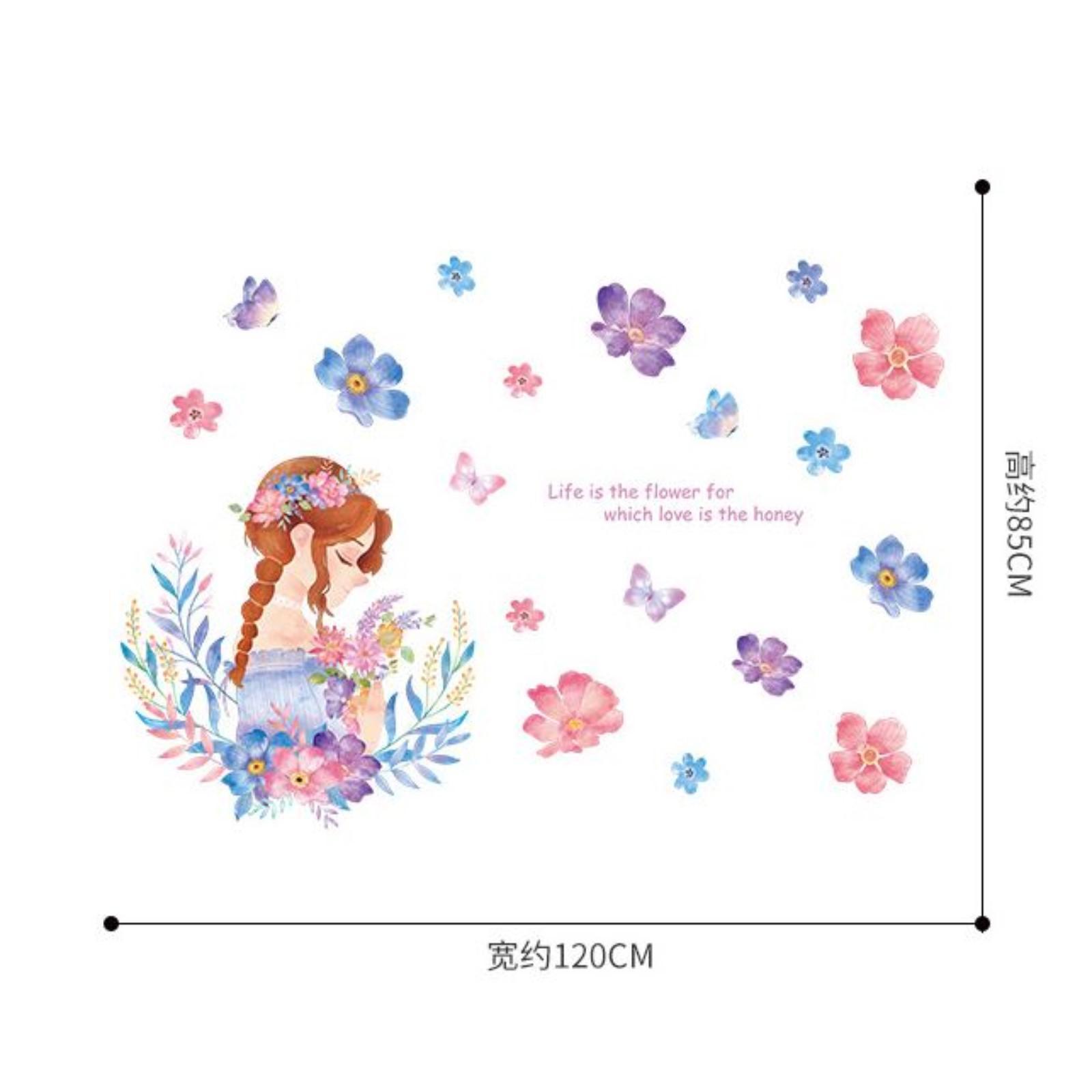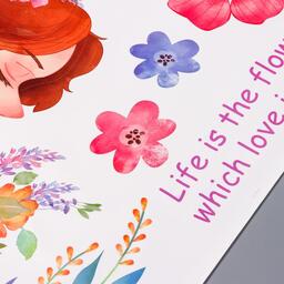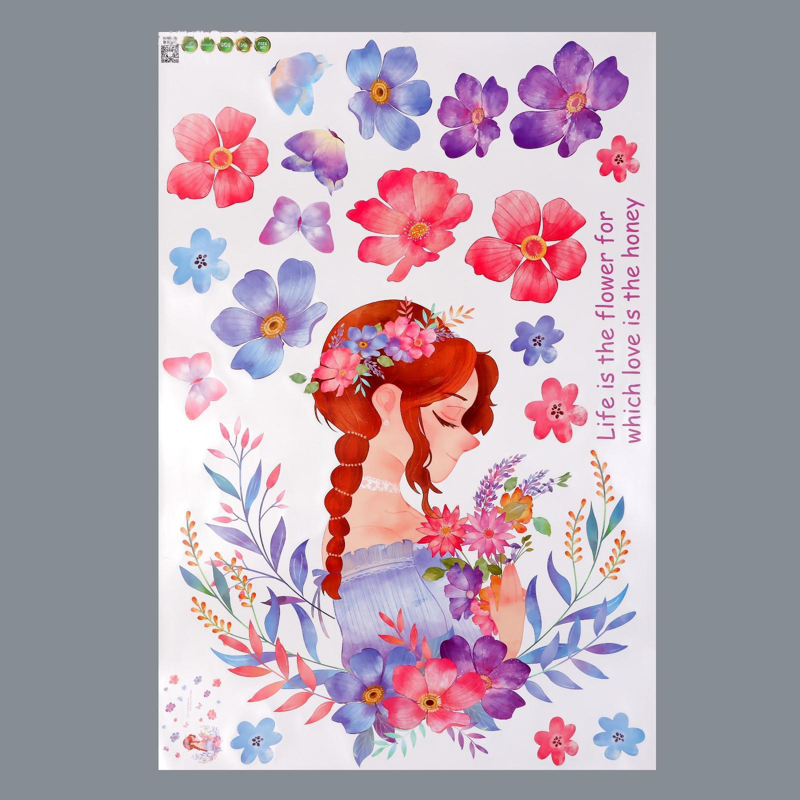 Наклейка пластик интерьерная цветная "Девушка в цветах" 60х90 см