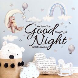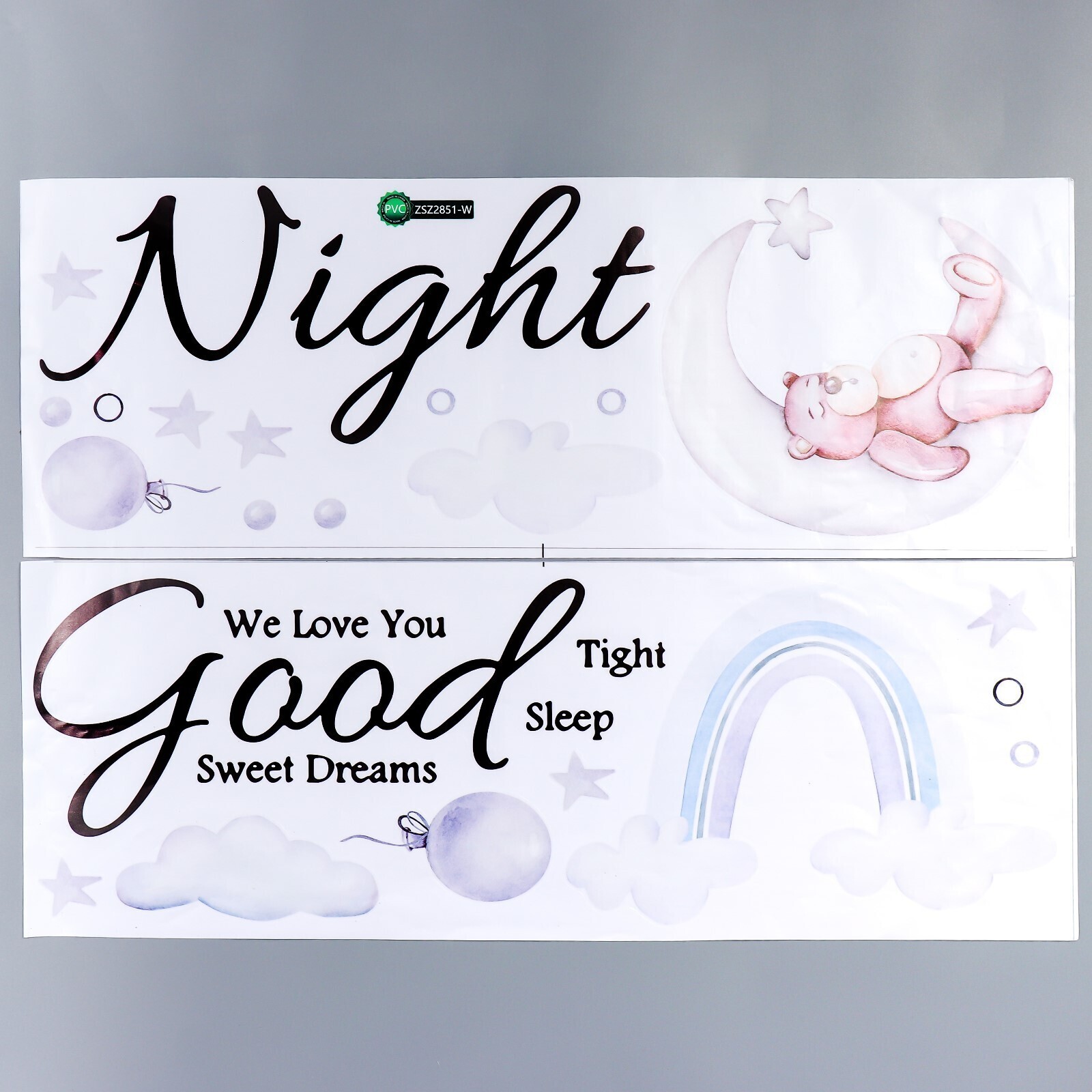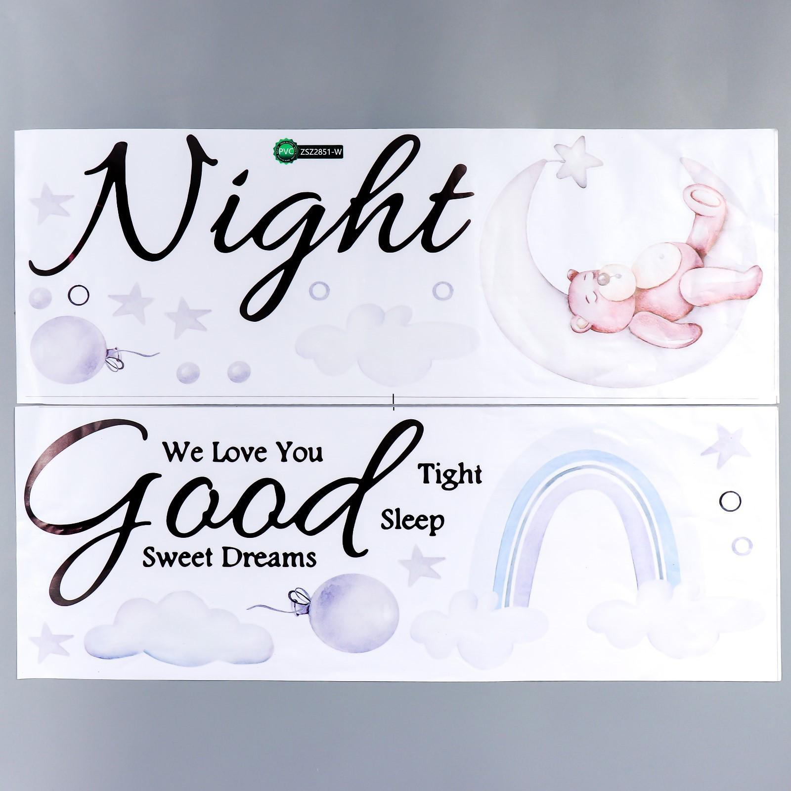 Наклейка пластик интерьерная цветная "Спящий медведь на месяце" 25х70 см набор 2 листа