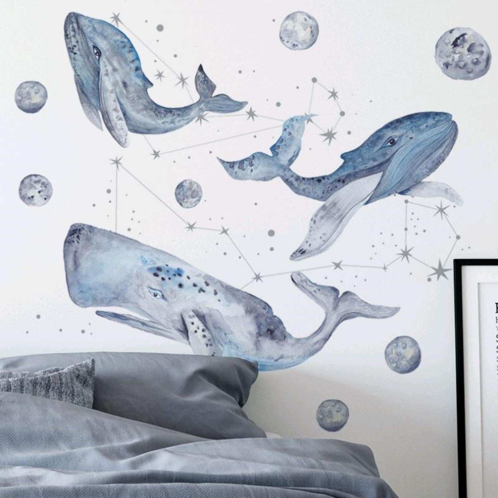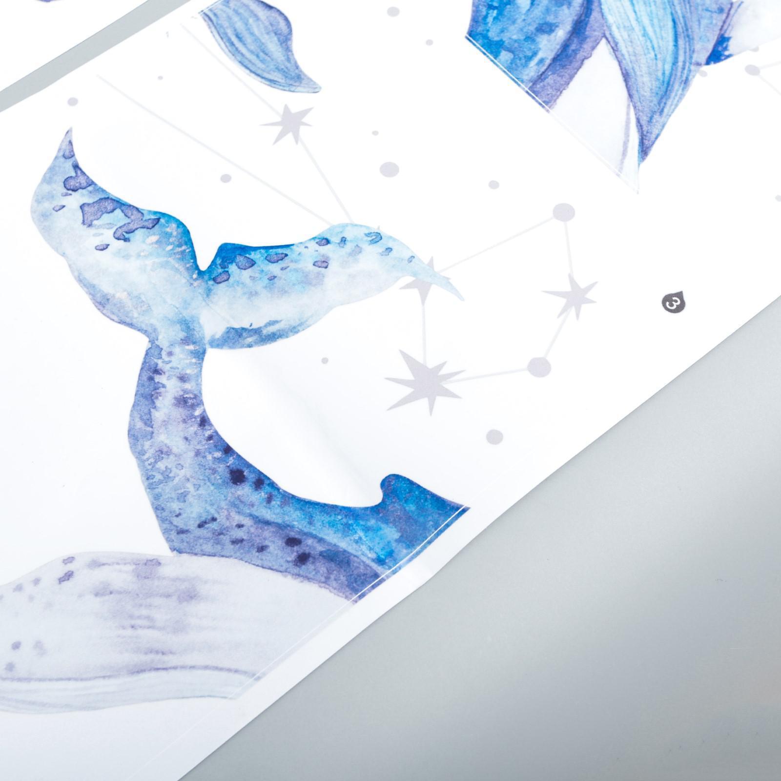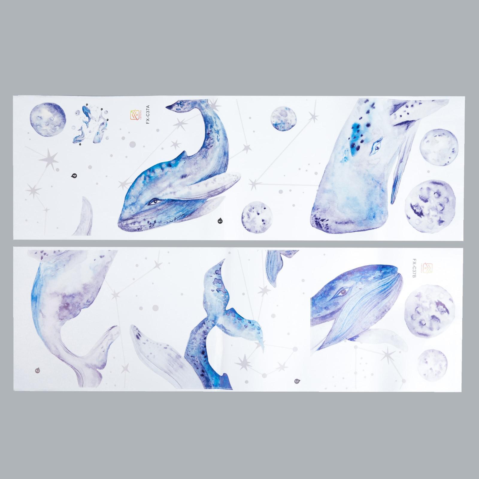 Наклейка пластик интерьерная цветная "Киты, кашалоты и созвездия" 30х90 см набор 2 листа