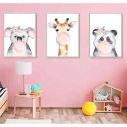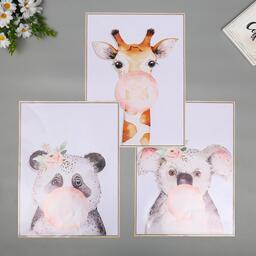 Наклейка пластик интерьерная цветная "Звери с жевательной резинкой" 30х40 см набор 3 листа