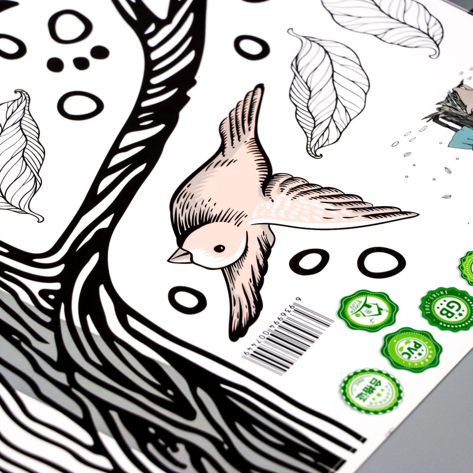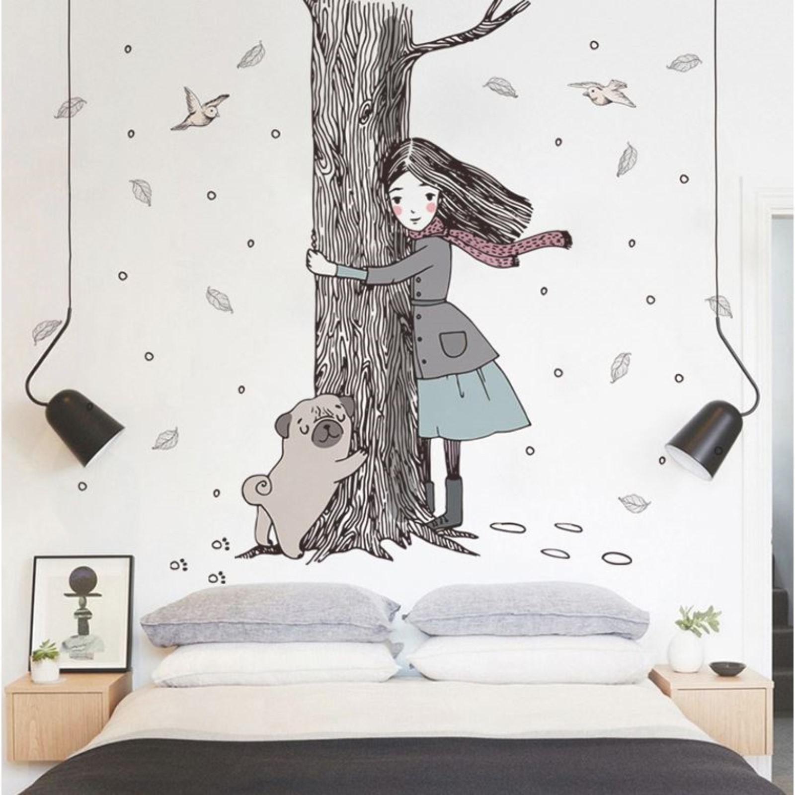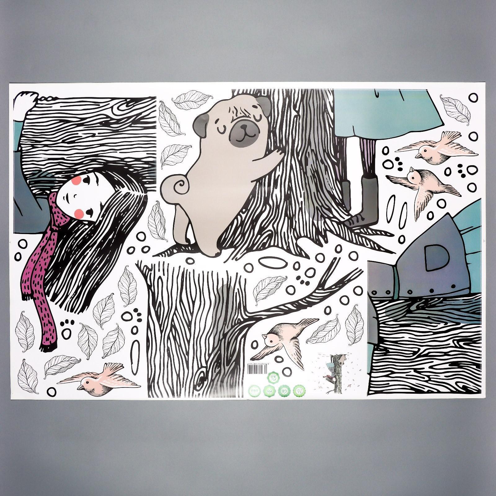 Наклейка пластик интерьерная чёрная "Девочка и мопс у дерева" 60х90 см