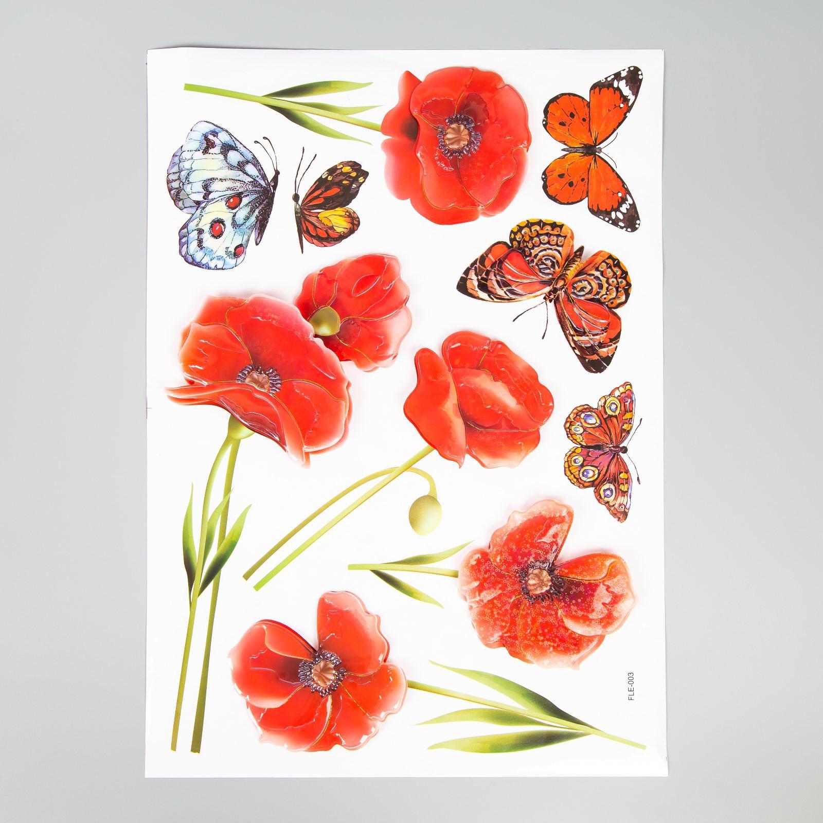 Наклейка пластик интерьерная 3D "Красные маки" 50х35 см