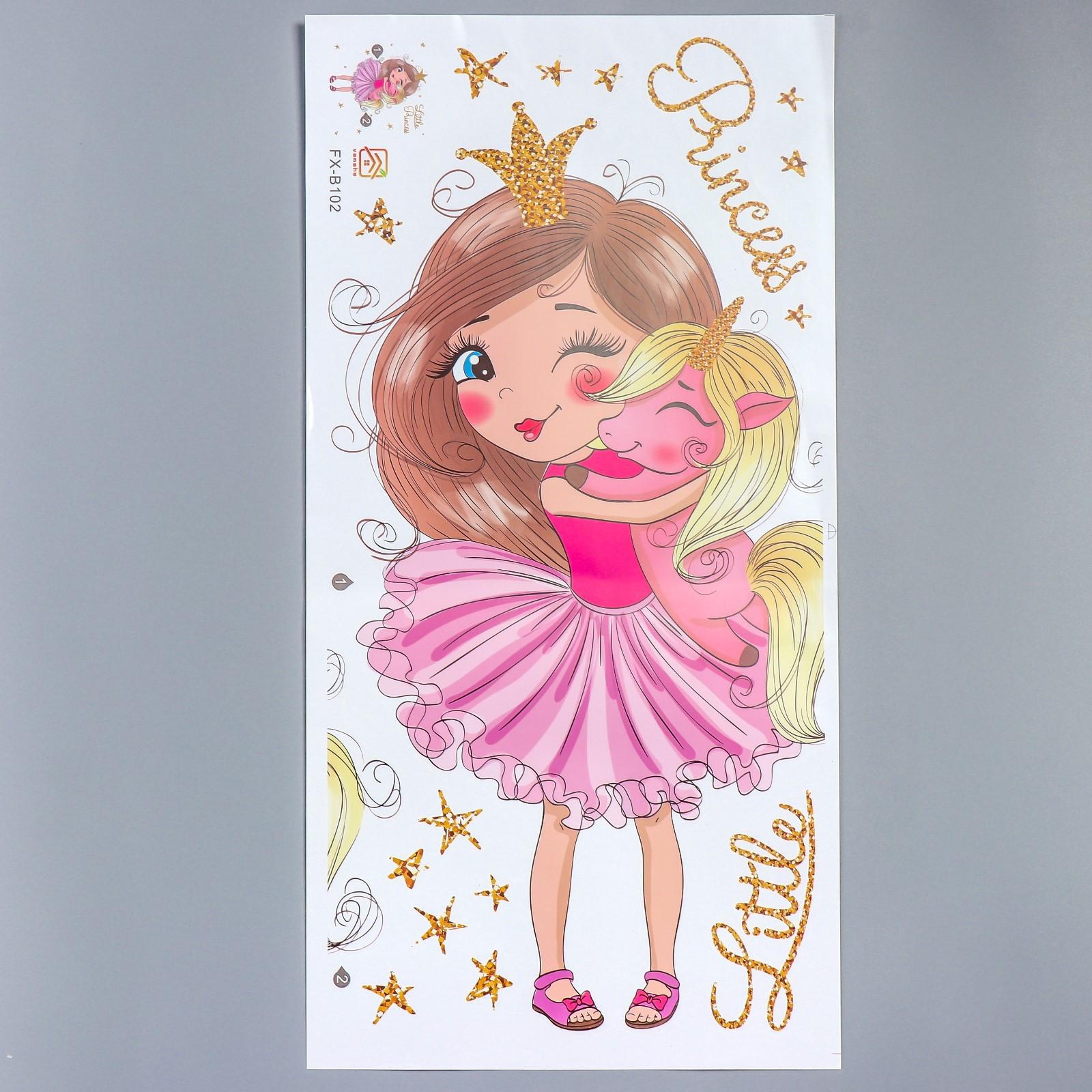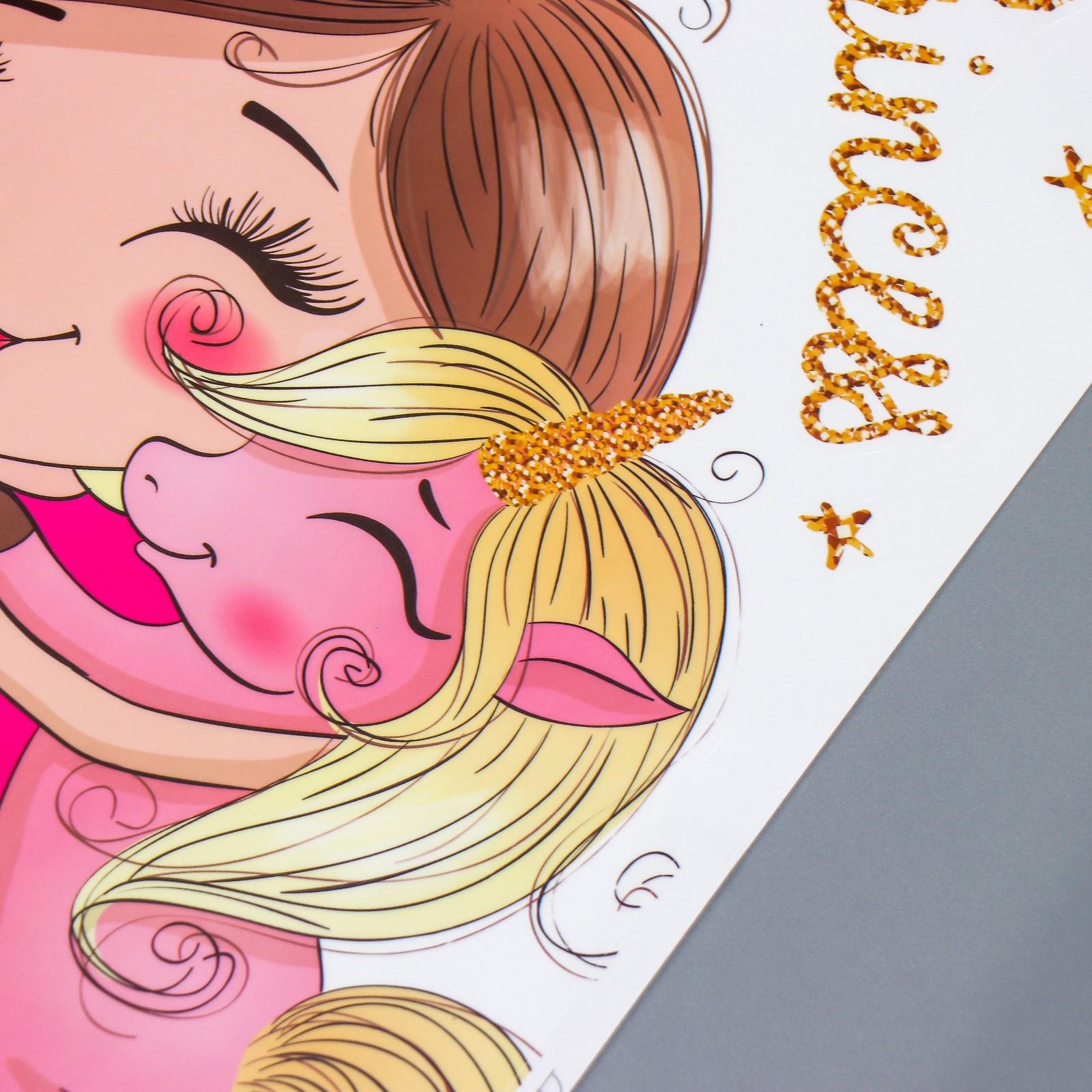 Наклейка пластик интерьерная цветная "Малышка обнимает единорога" 30х60 см