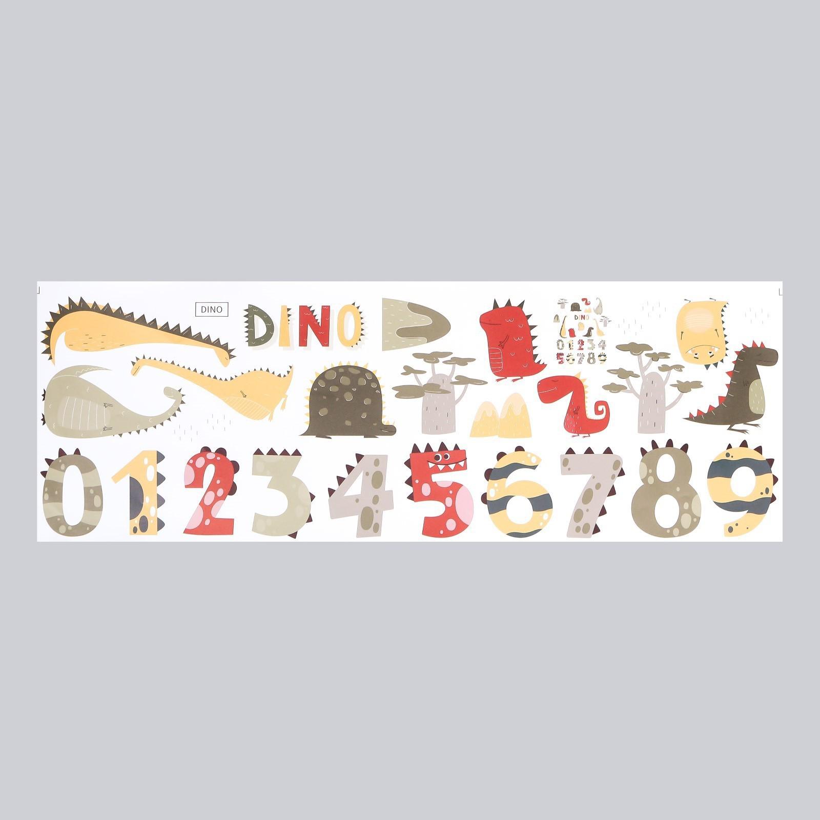 Наклейка пластик интерьерная цветная "Цифры и динозавры" 30х90 см