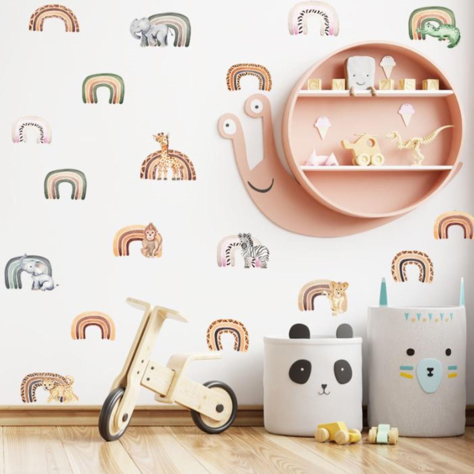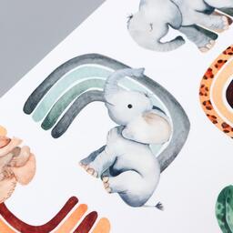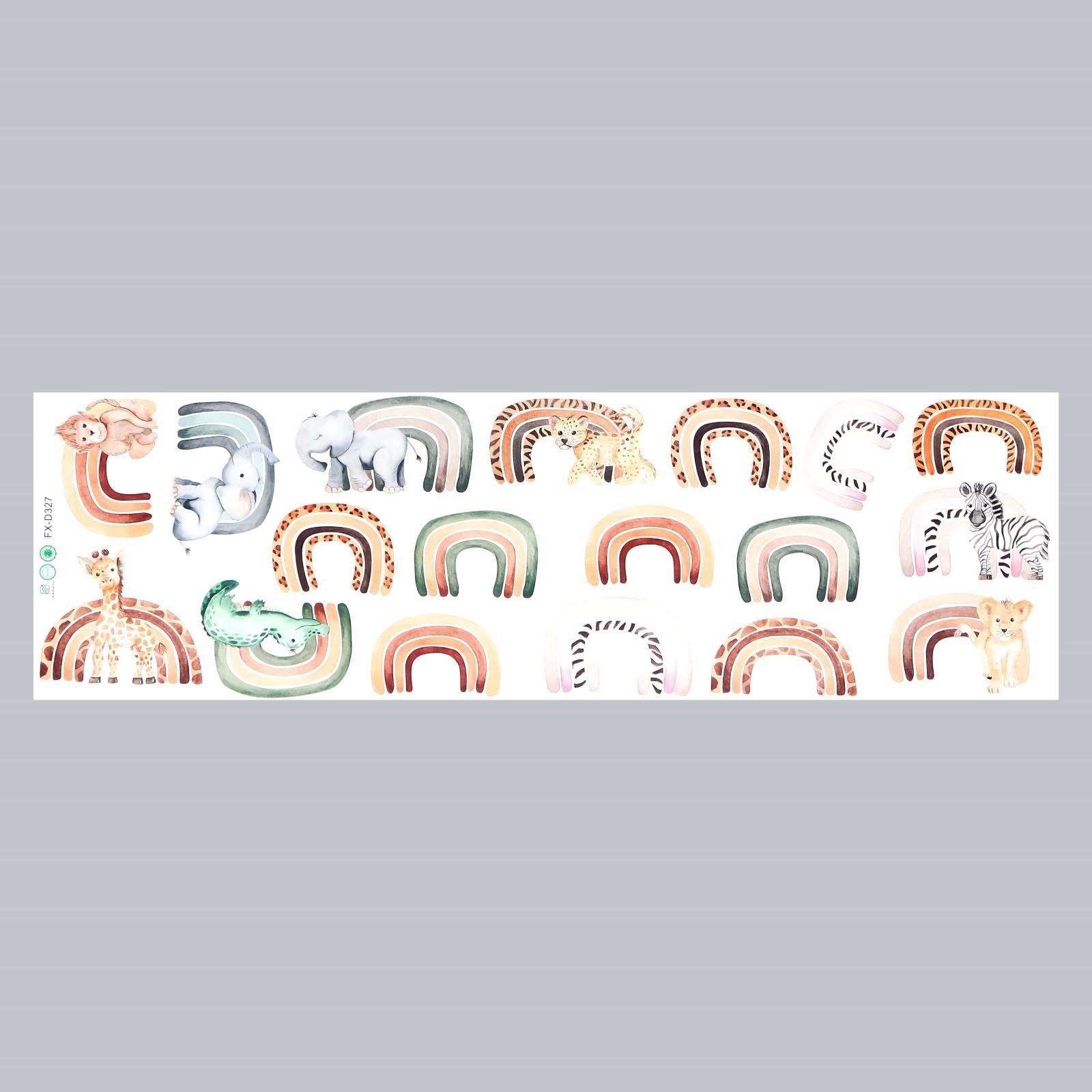 Наклейка пластик интерьерная цветная "Зверята и радуга" 30х90 см
